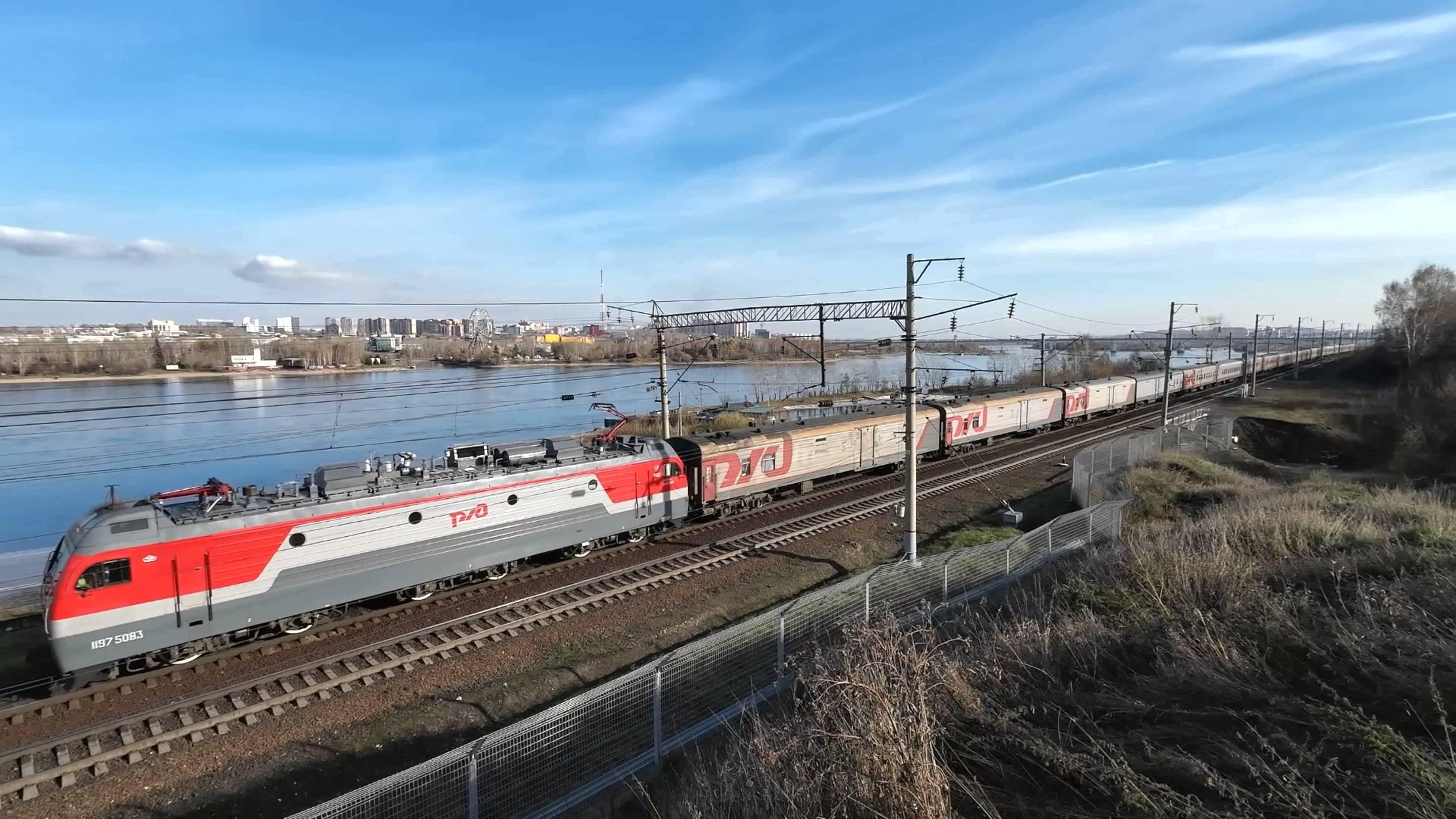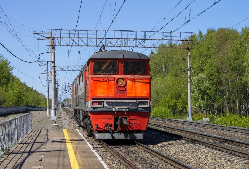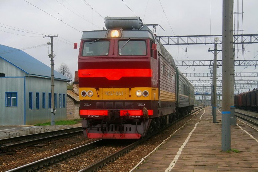 Электровоз чс2к с пригородным поездом