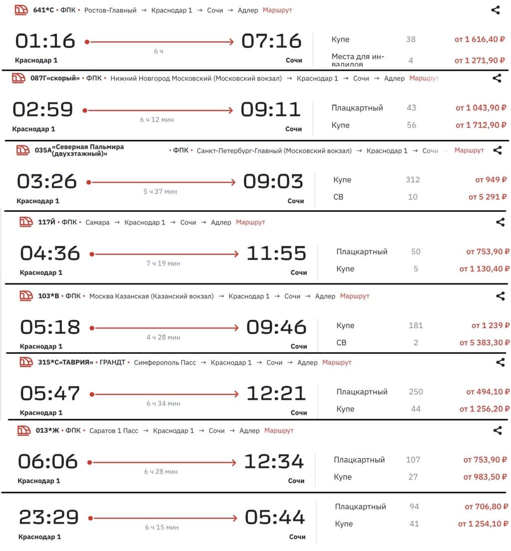 Поезд 113а Санкт-Петербург Адлер