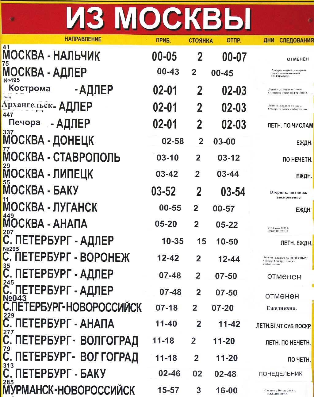 Москва Анапа расписание поездов