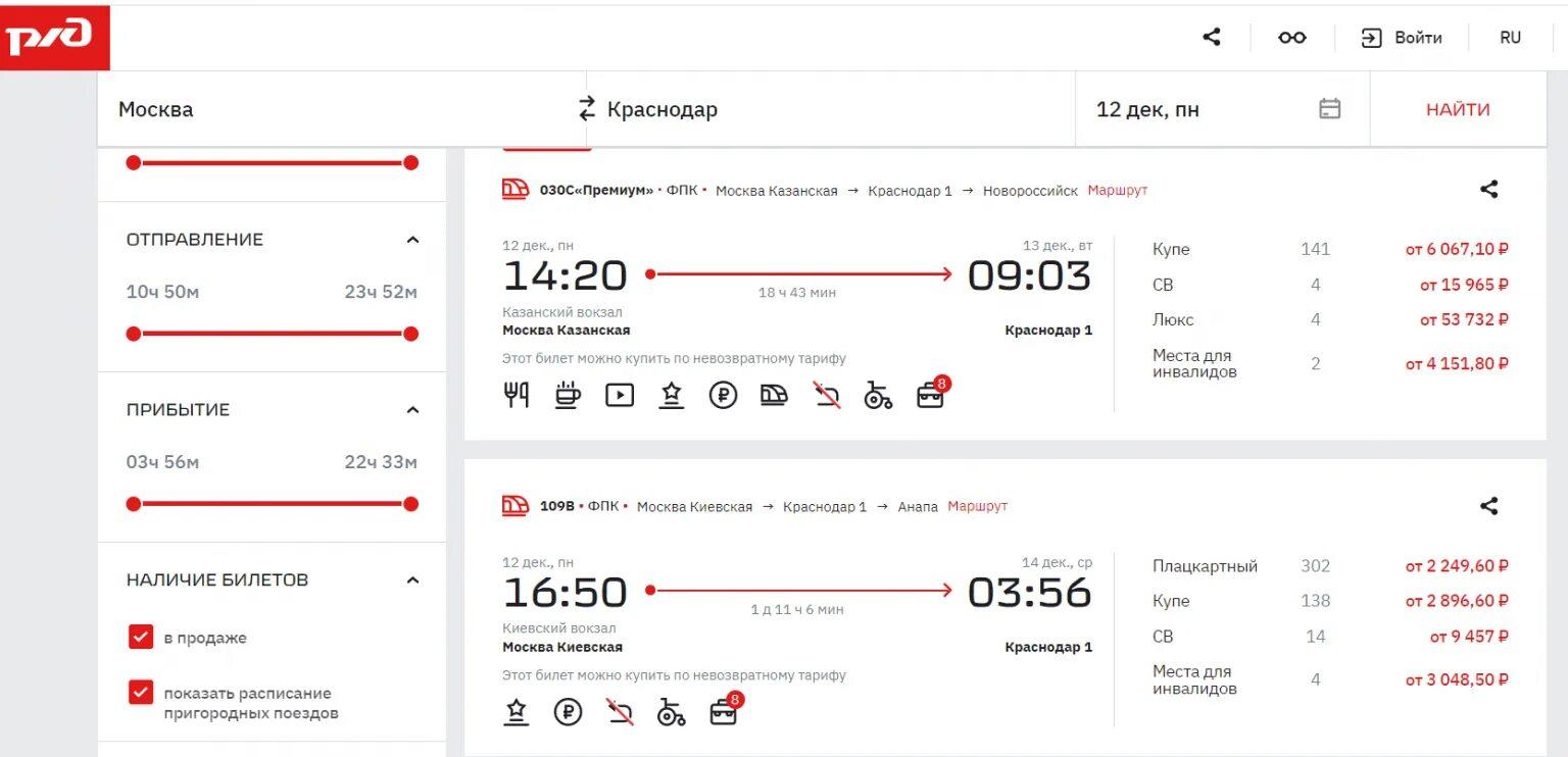Поезд Москва Краснодар