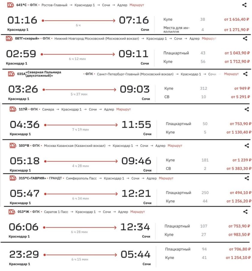 Схема электричек Краснодарского края