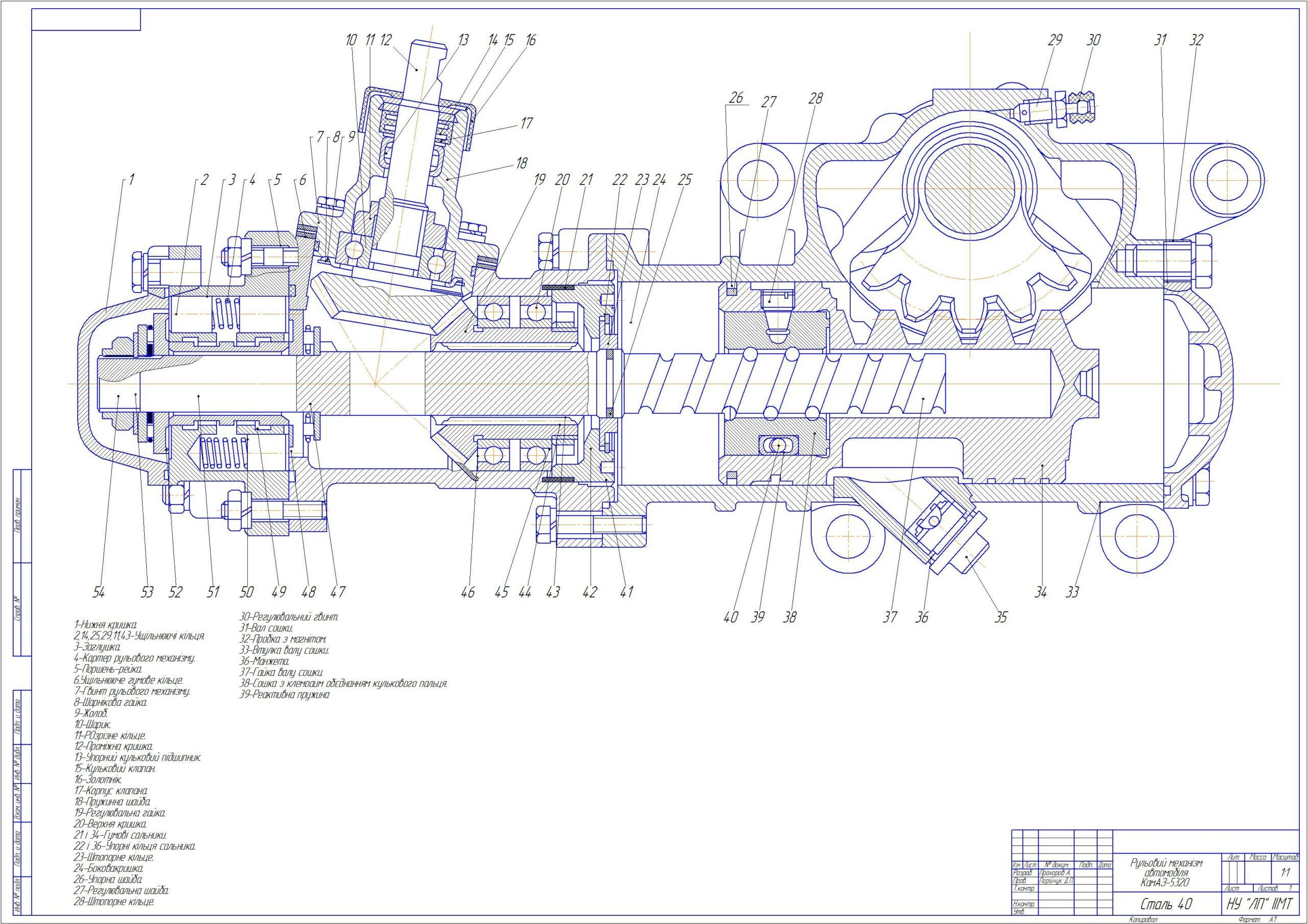 Рулевой механизм КАМАЗ 5320 чертеж