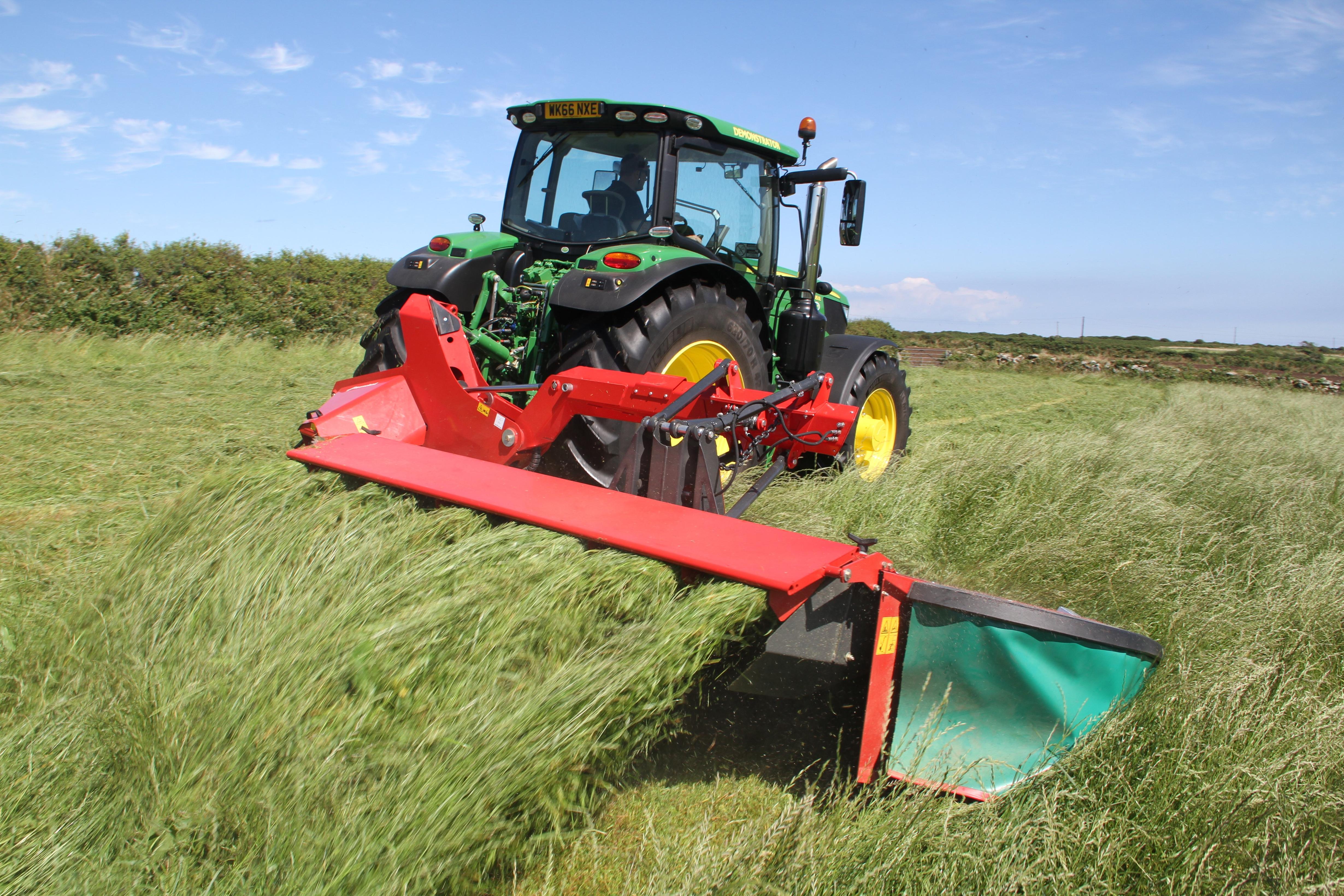Покос травы трактором роторной косилкой