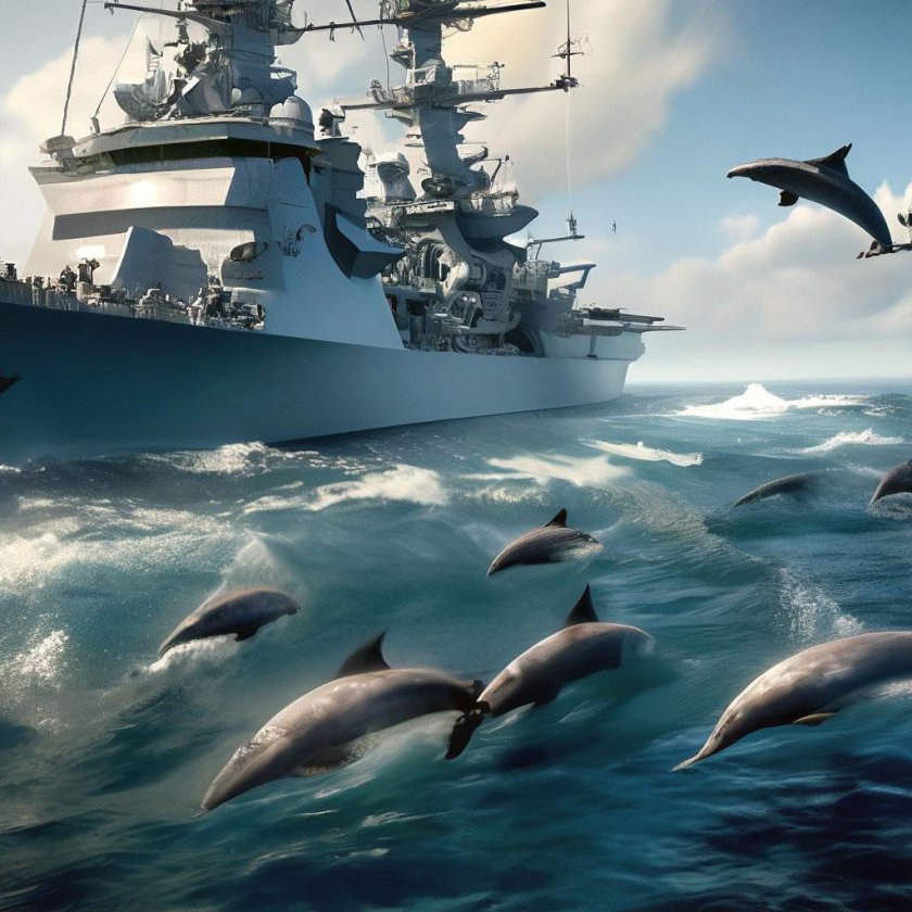 Дельфины за кораблем