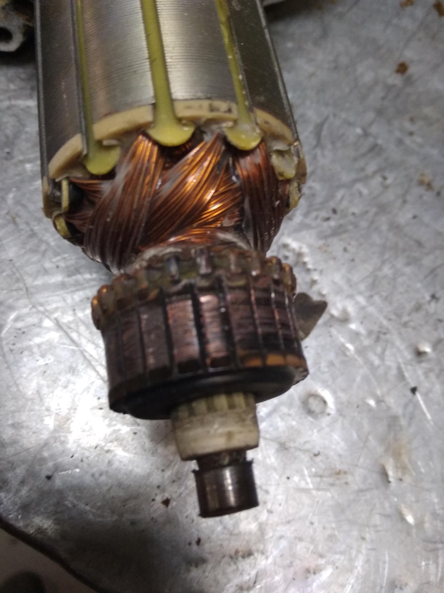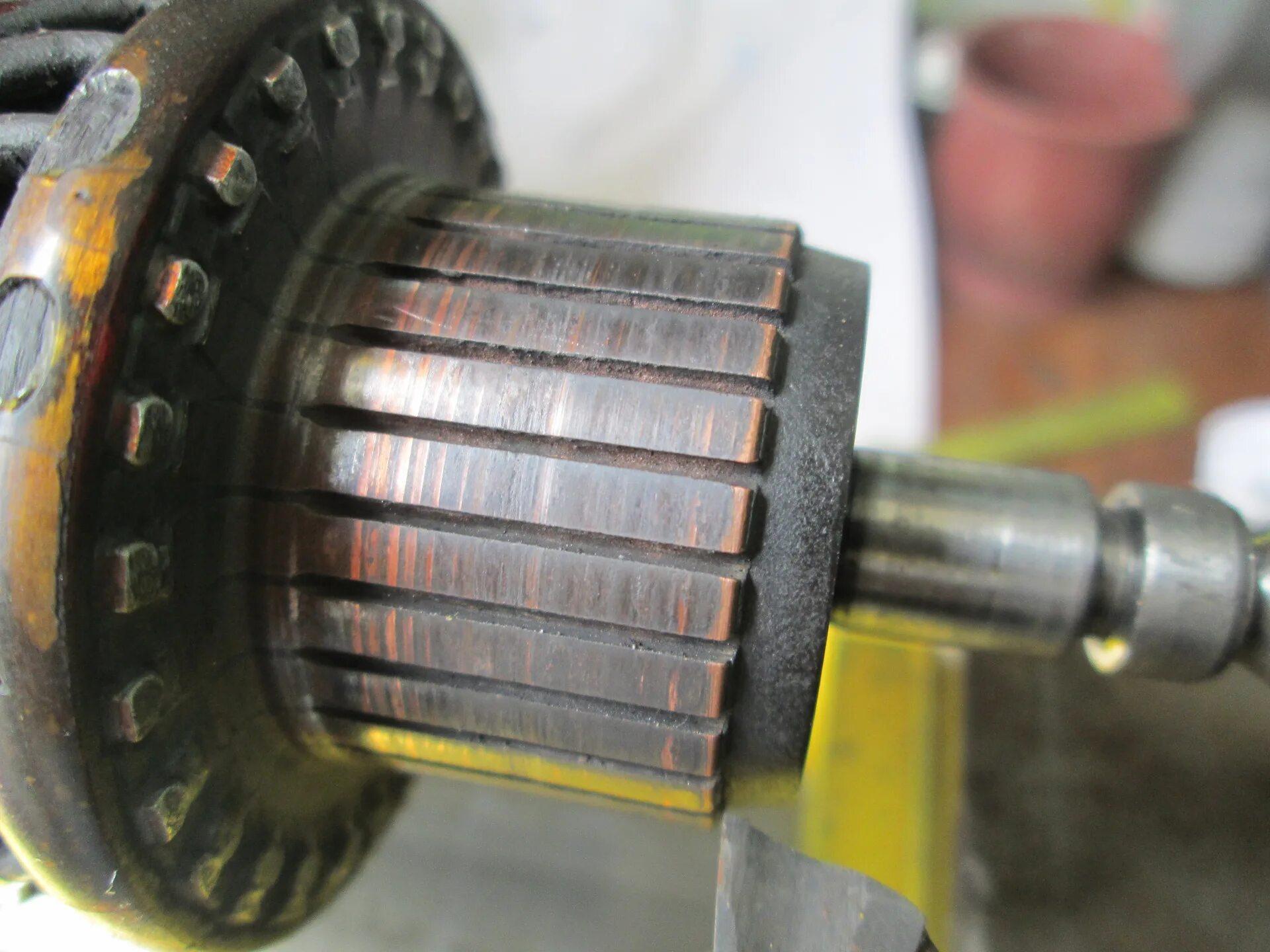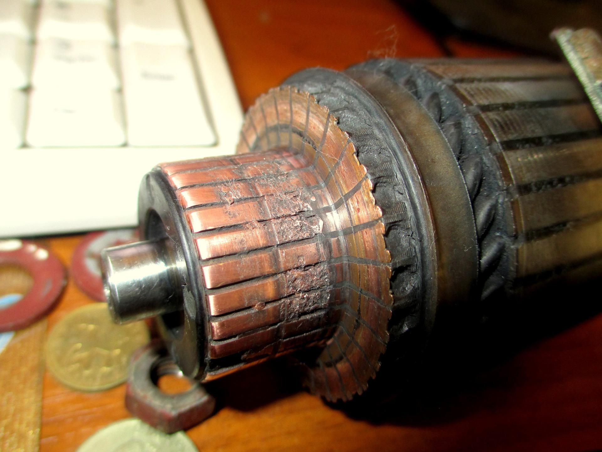 Выгоревшие ламели якоря стартера
