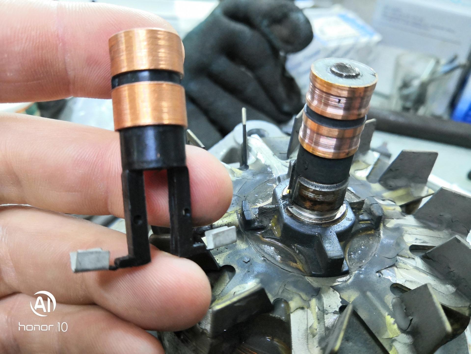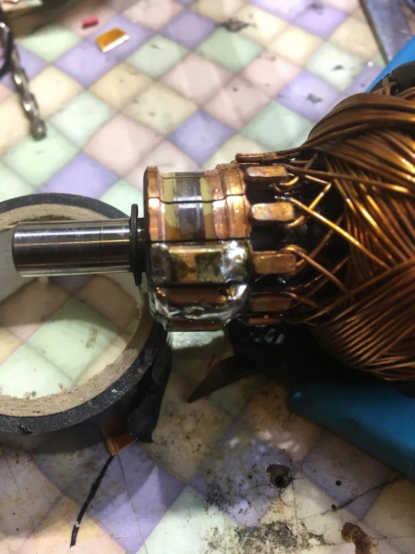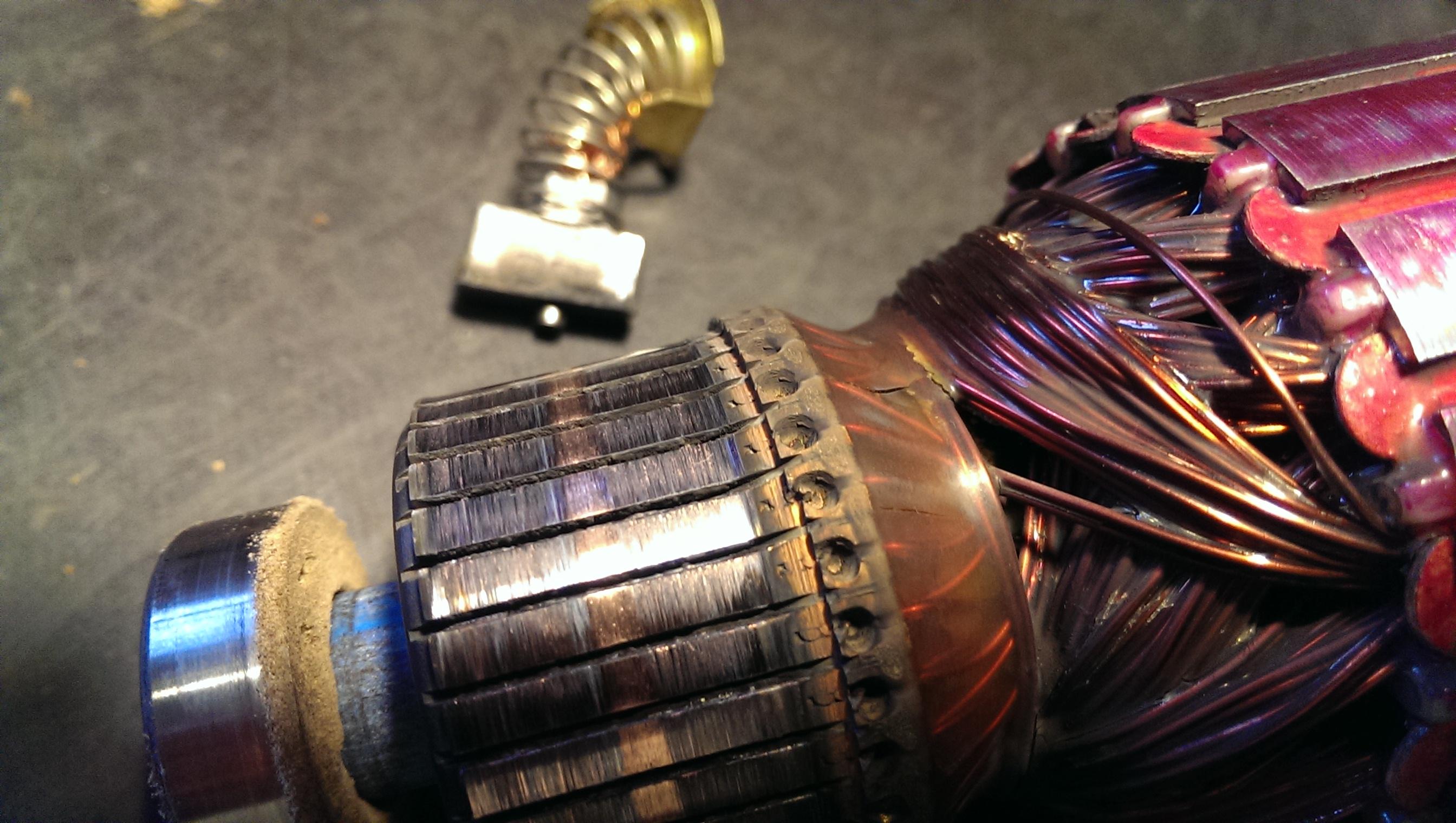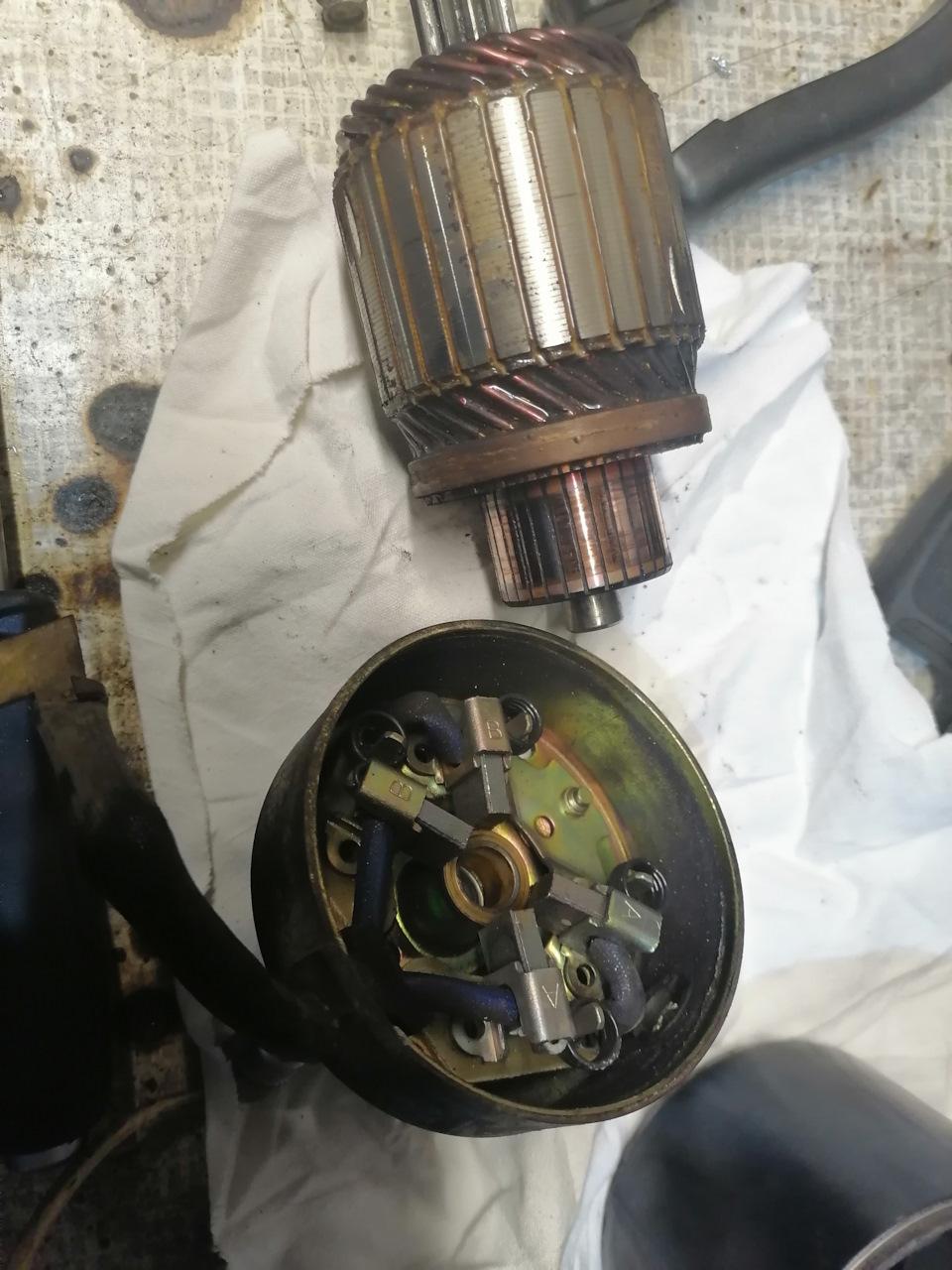 Выгоревшие ламели якоря стартера