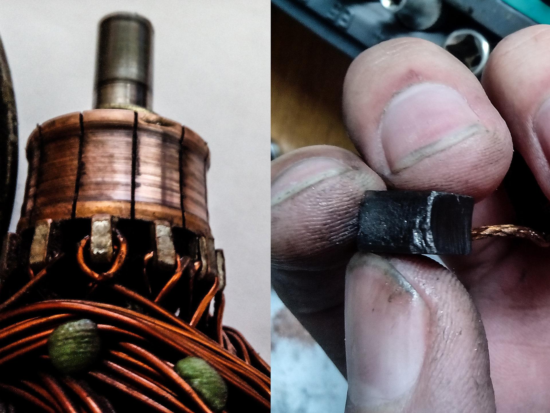 Изношенные щетки электродвигателя
