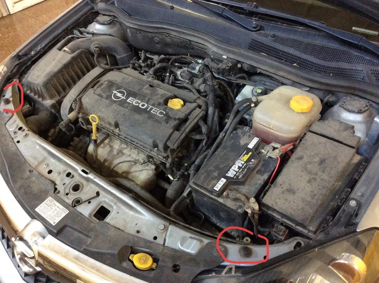 Опель Астра h разъемы под капотом