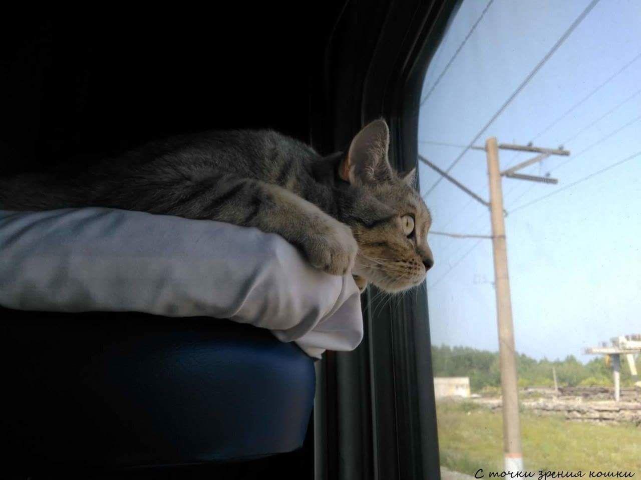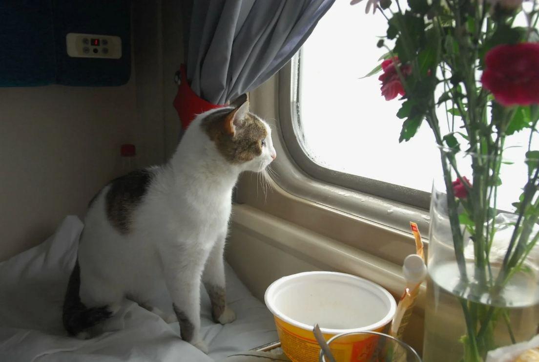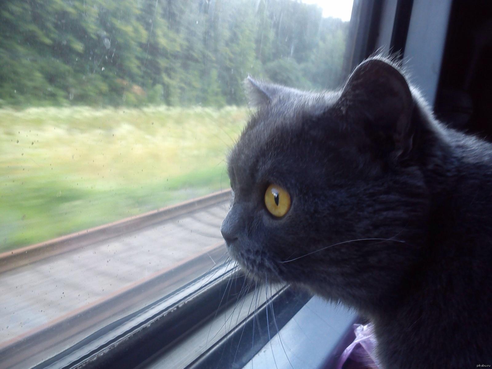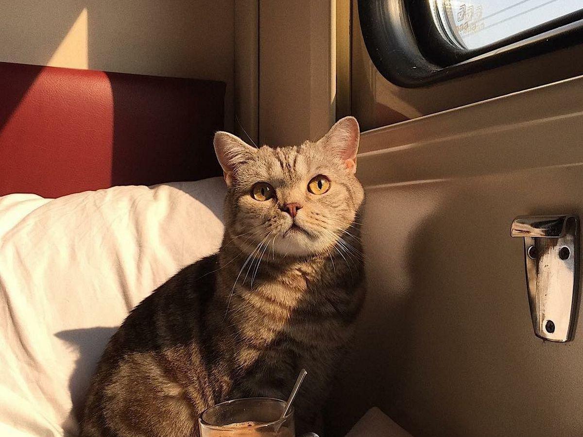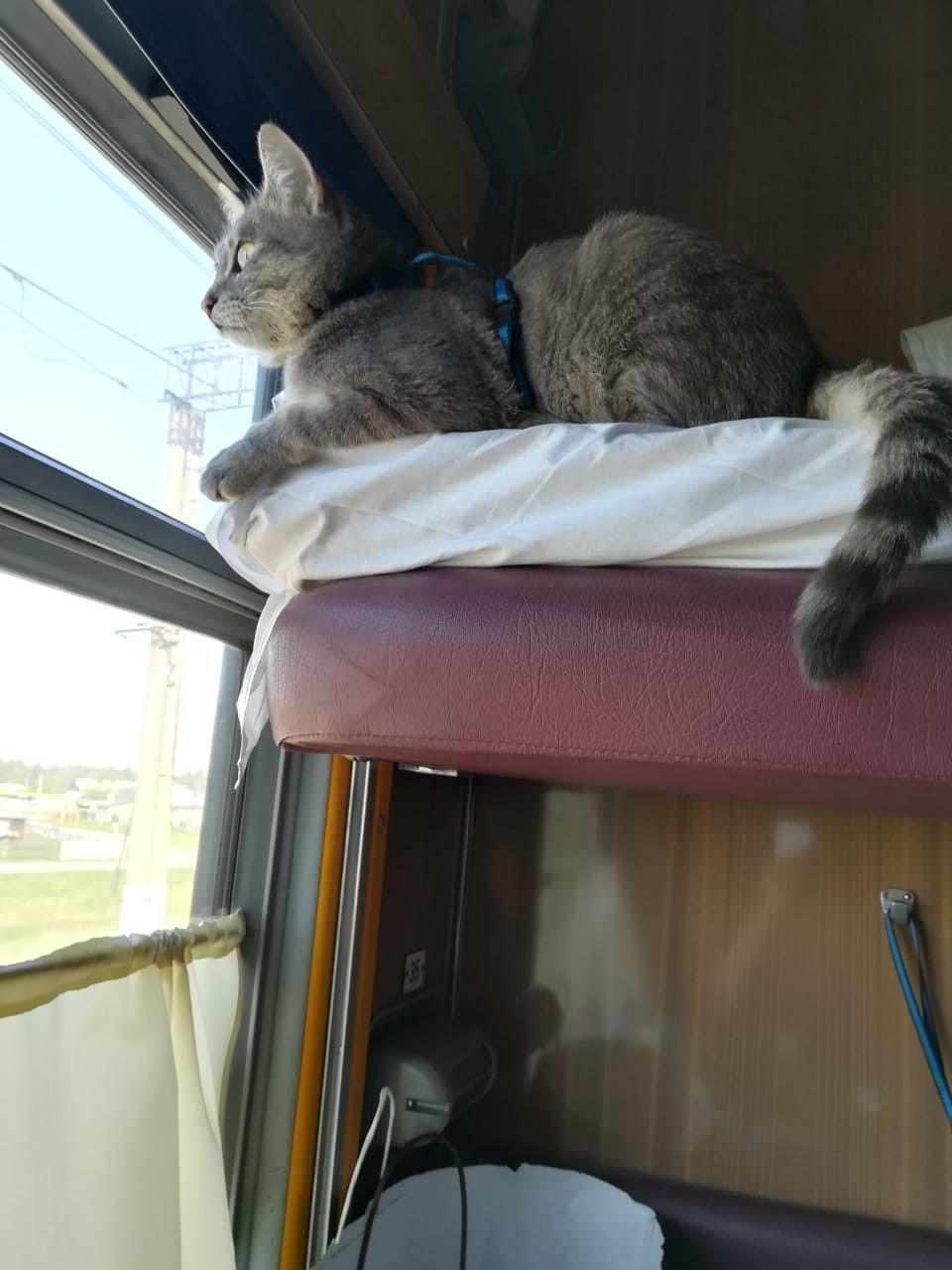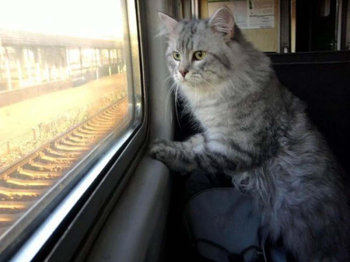 Кот едет в поезде