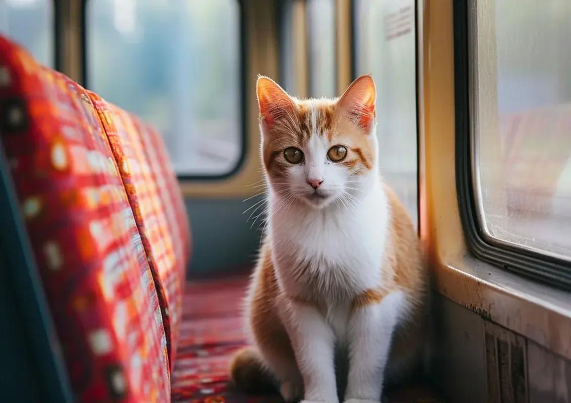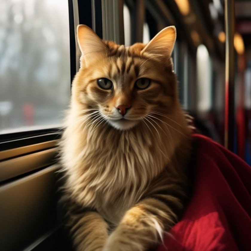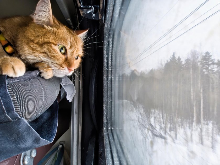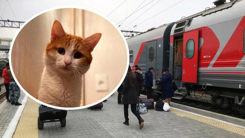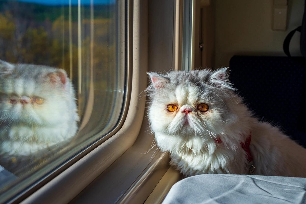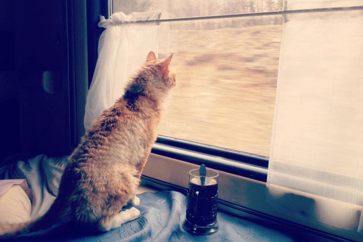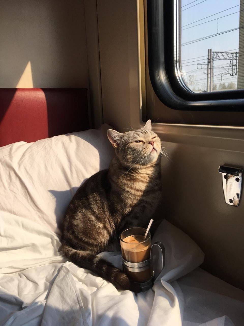 Кот едет в поезде