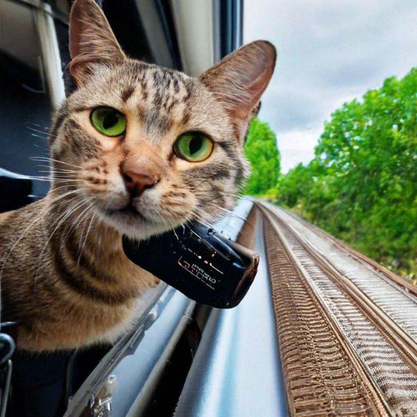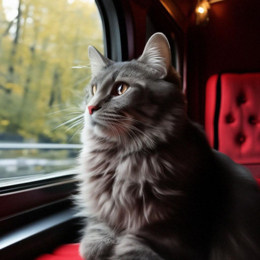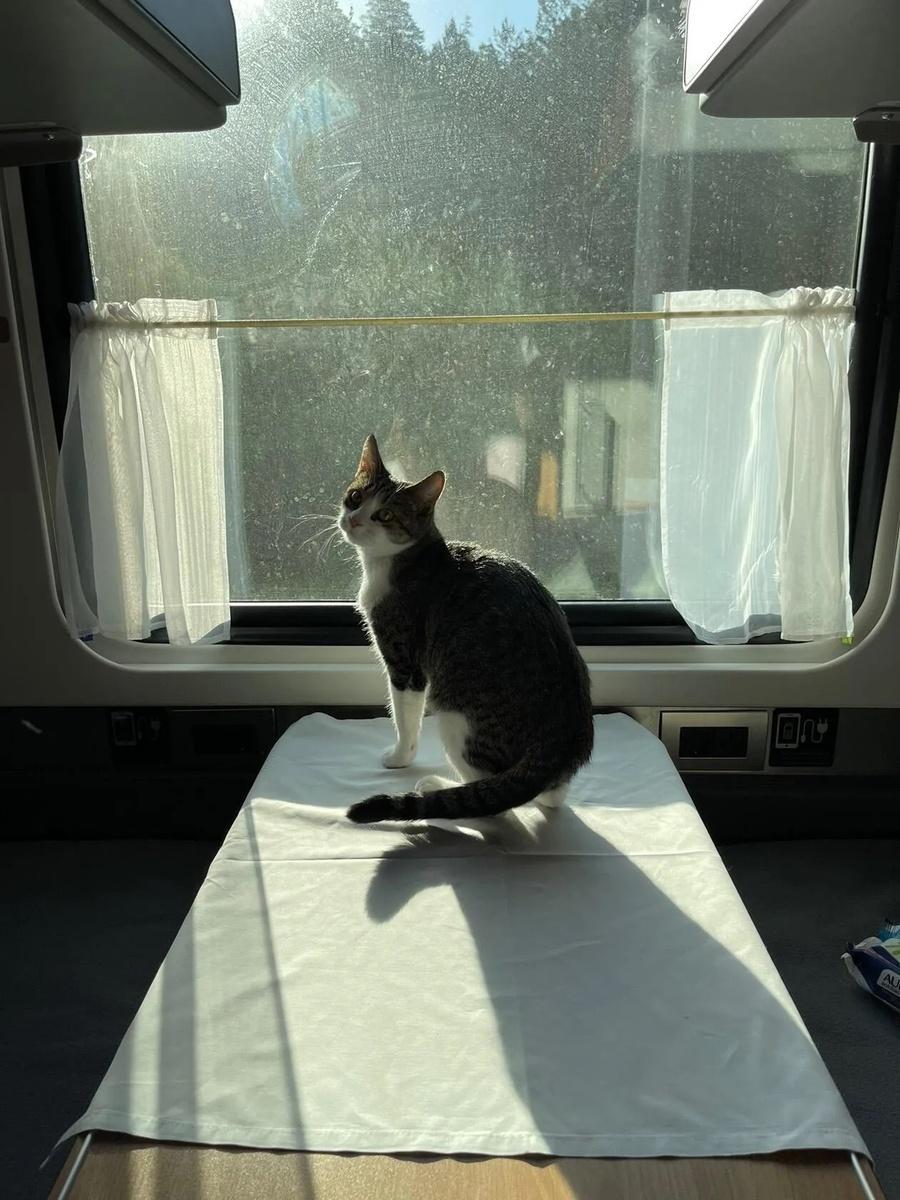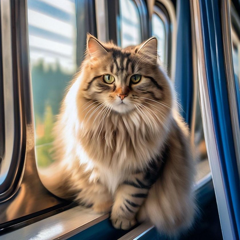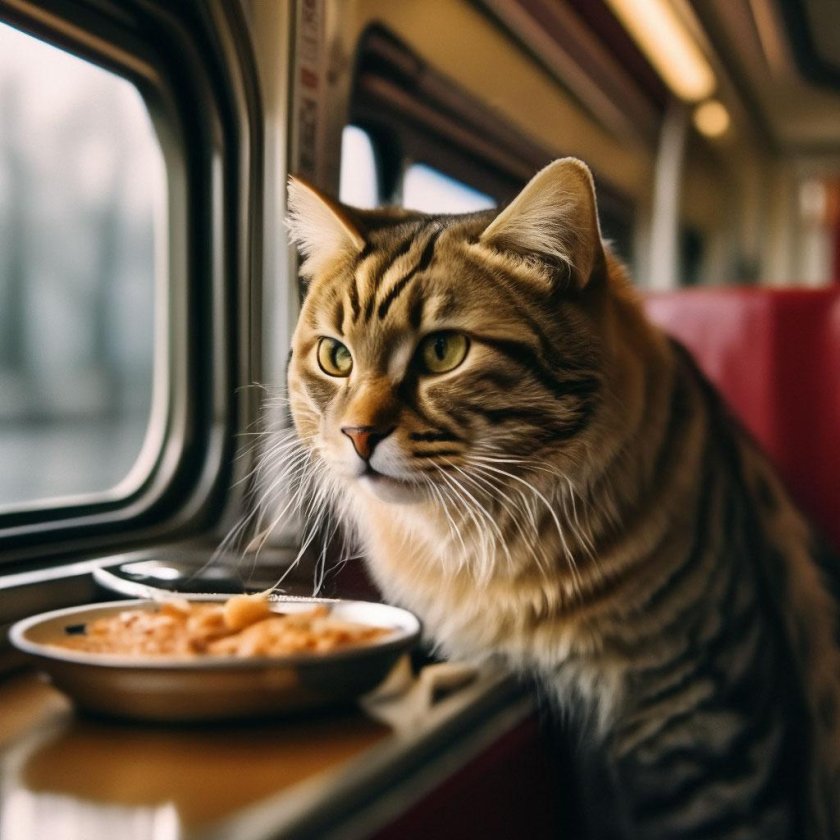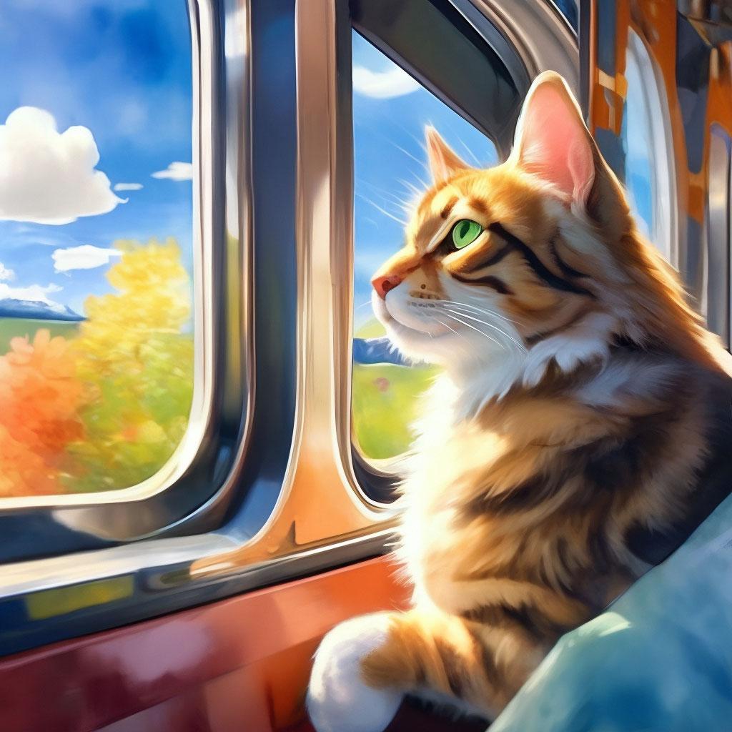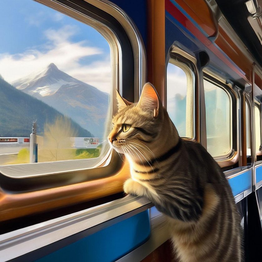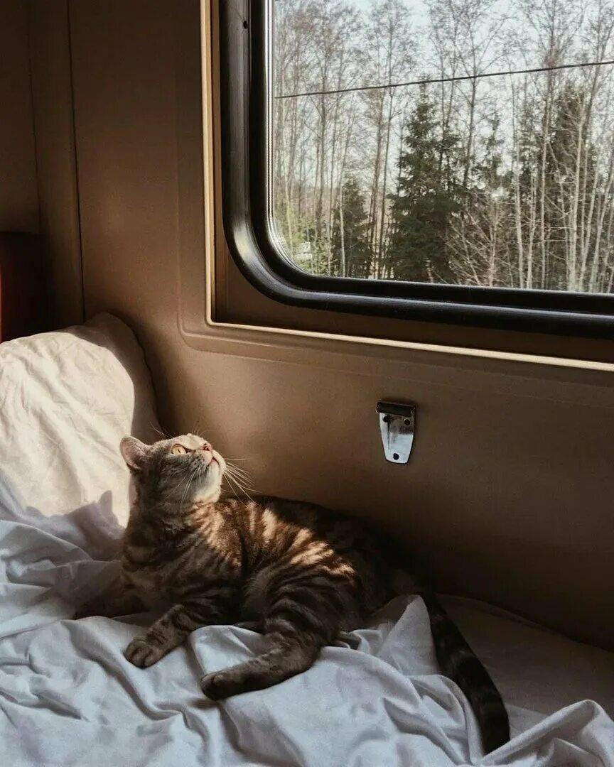 Кот едет в поезде