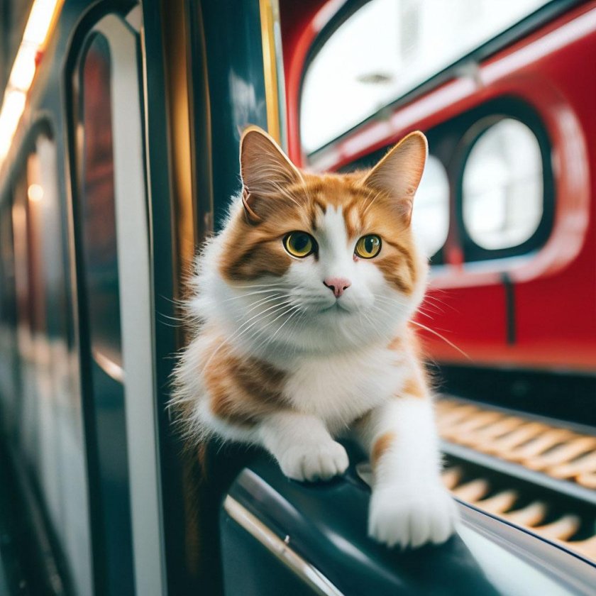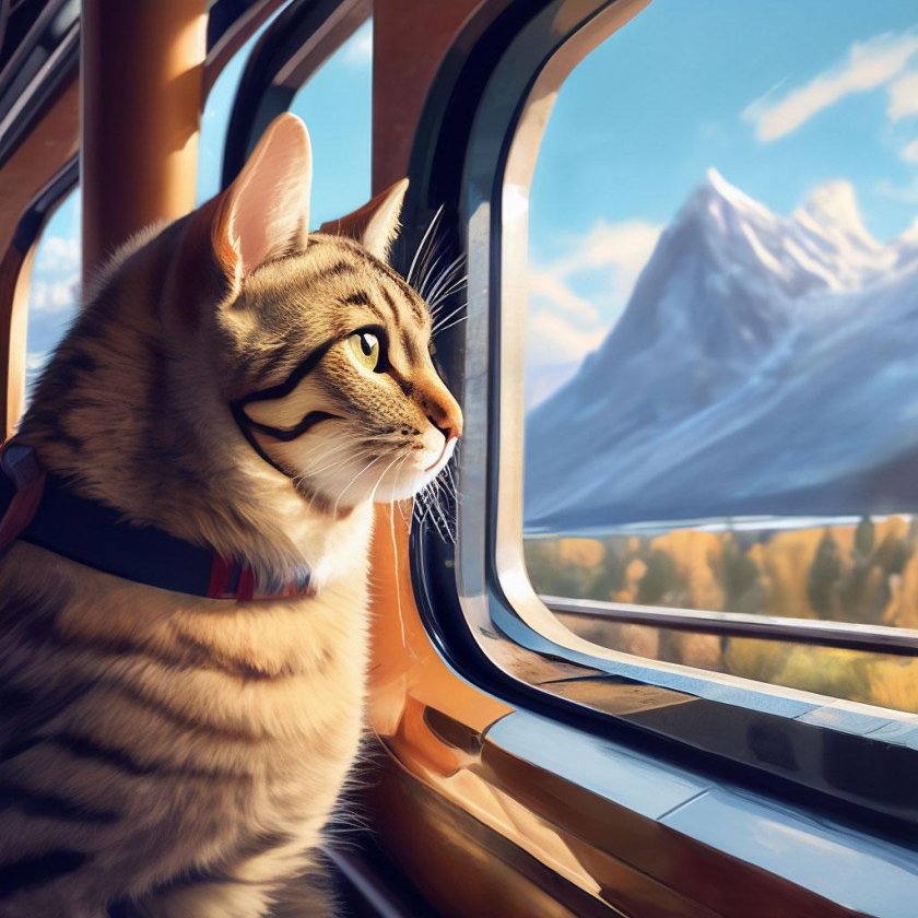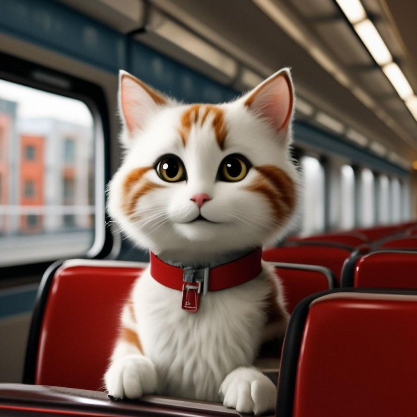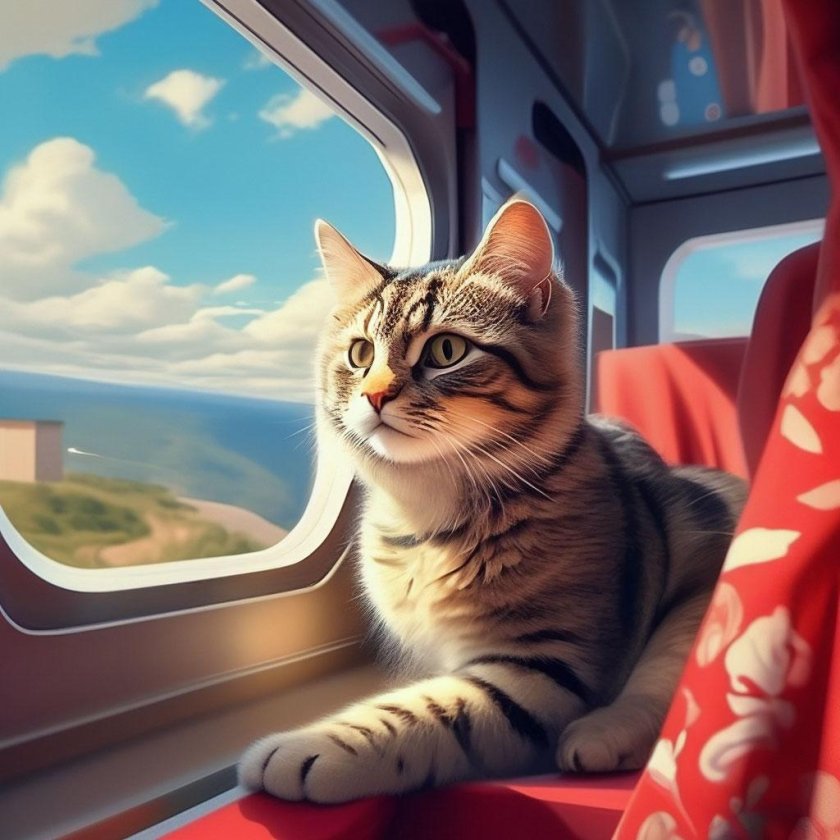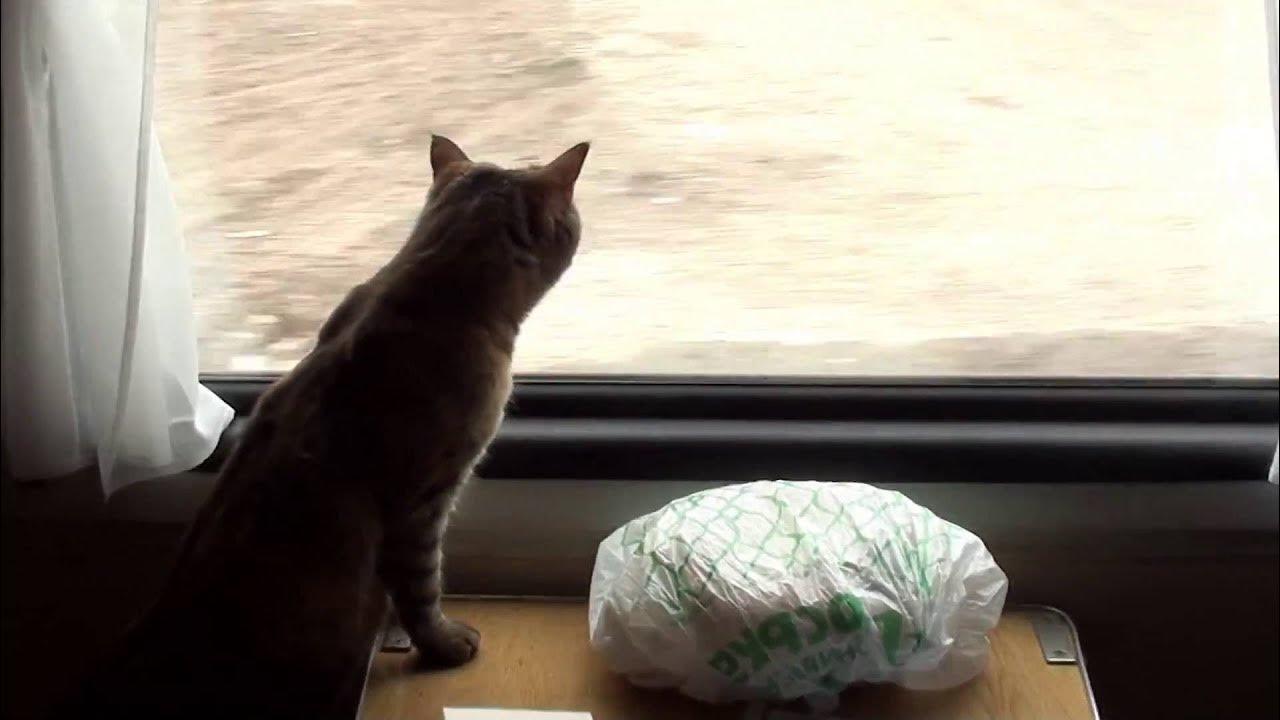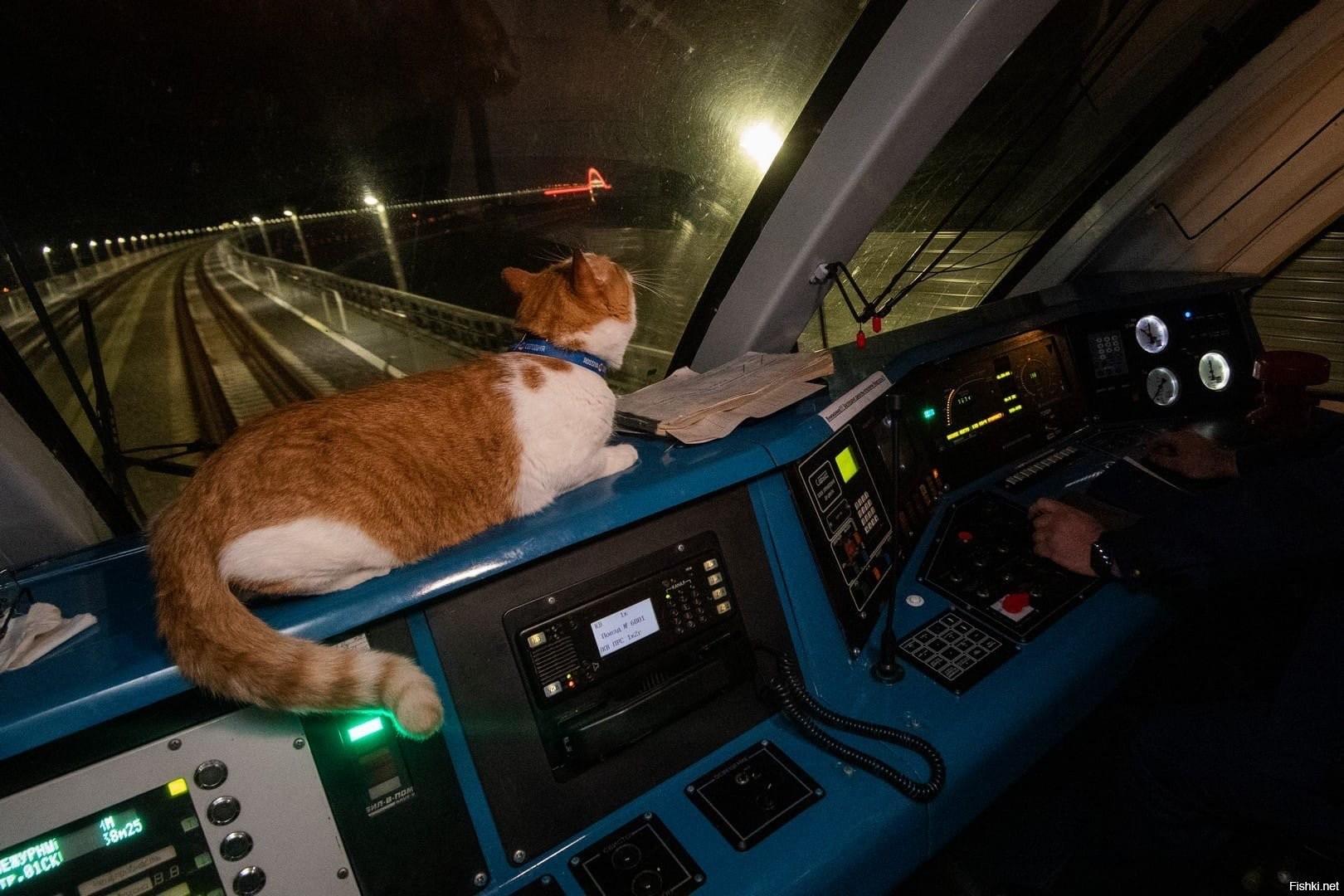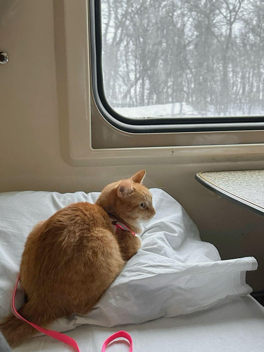 Кот едет в поезде