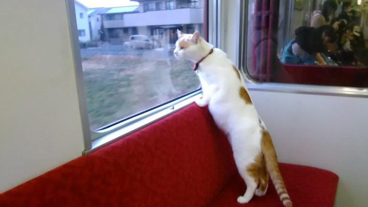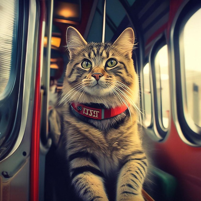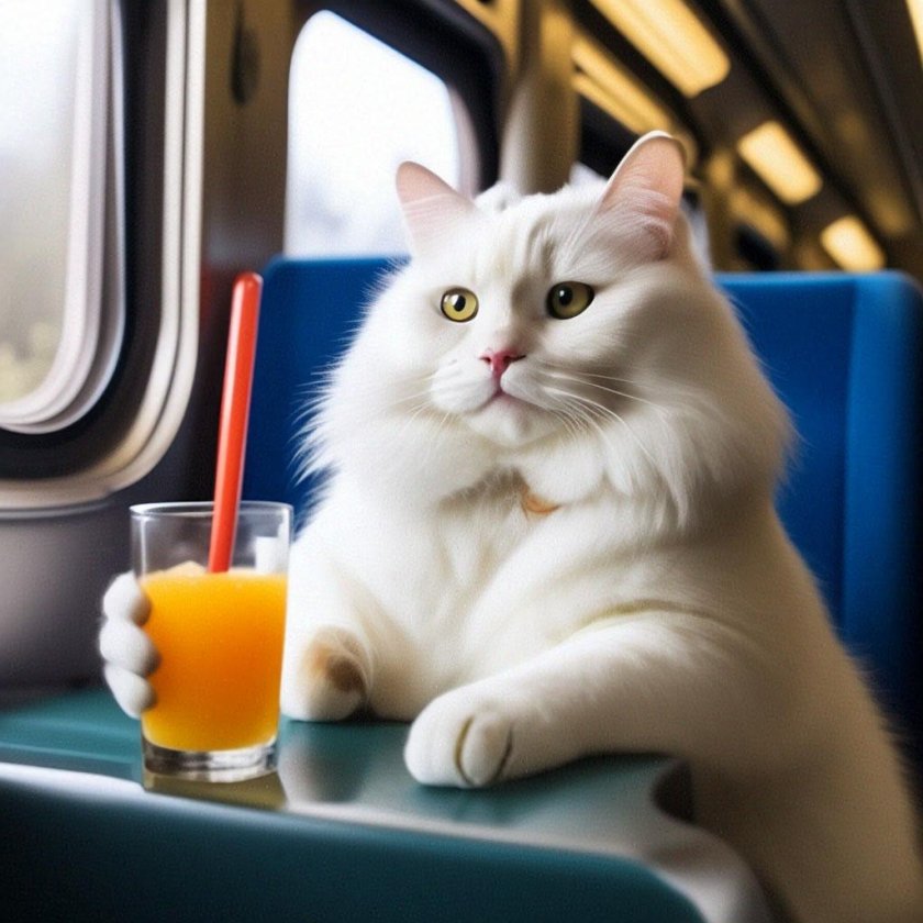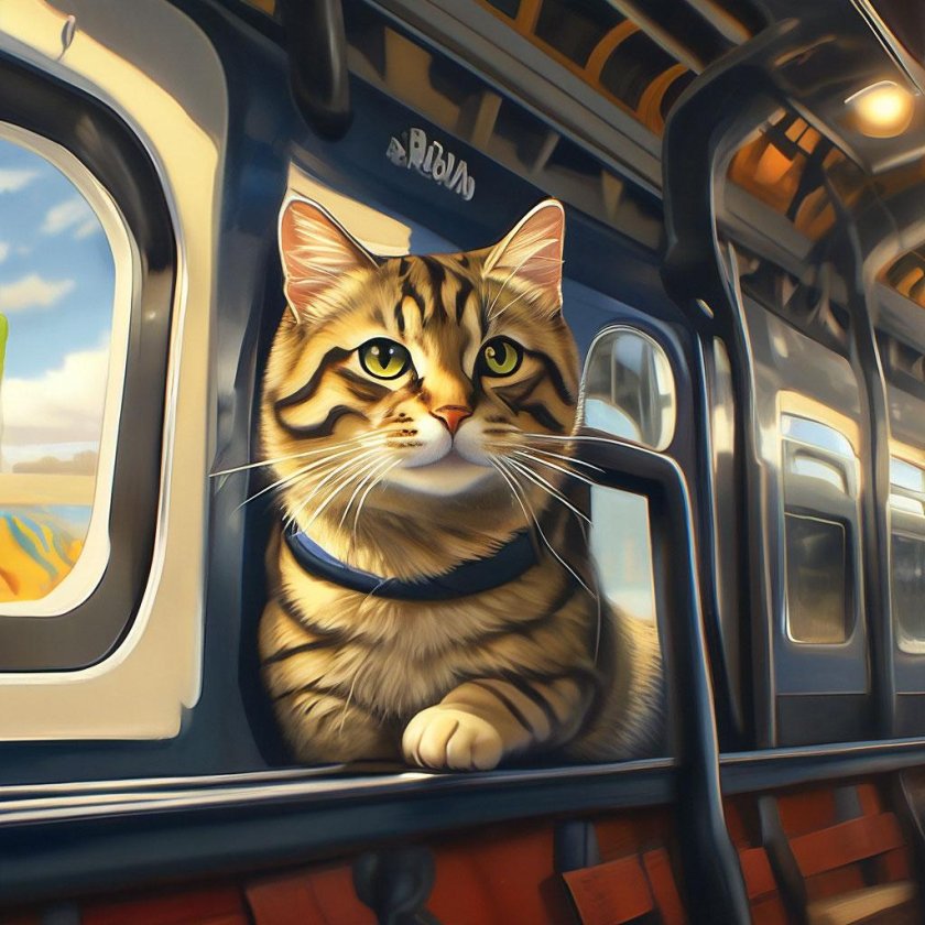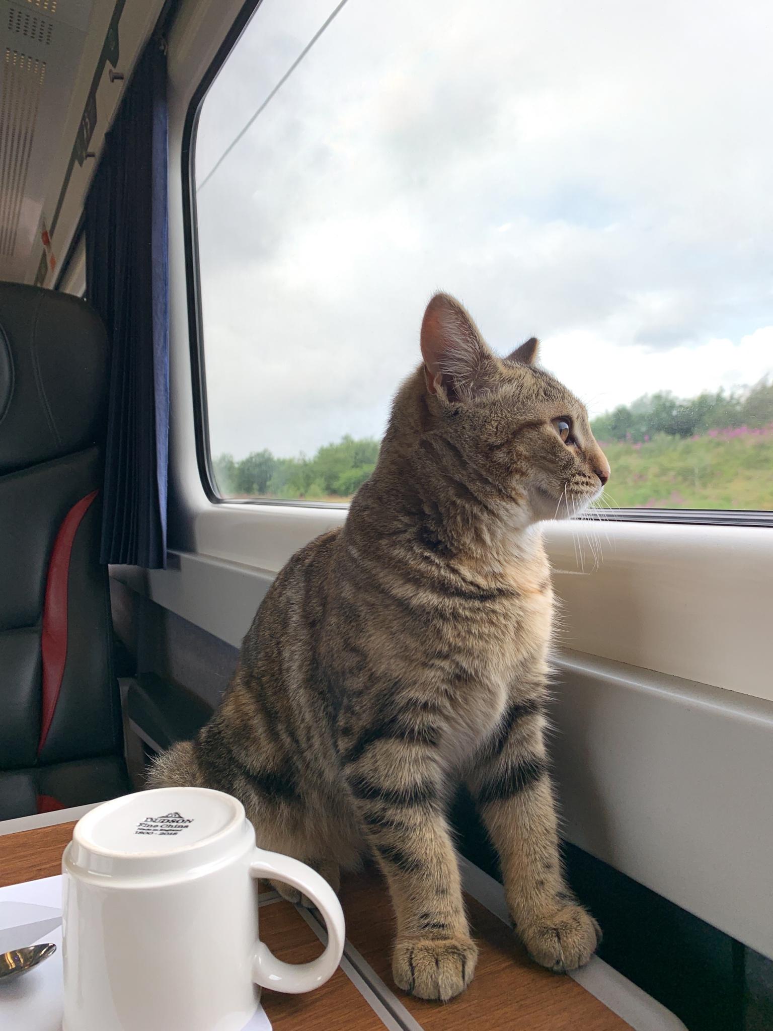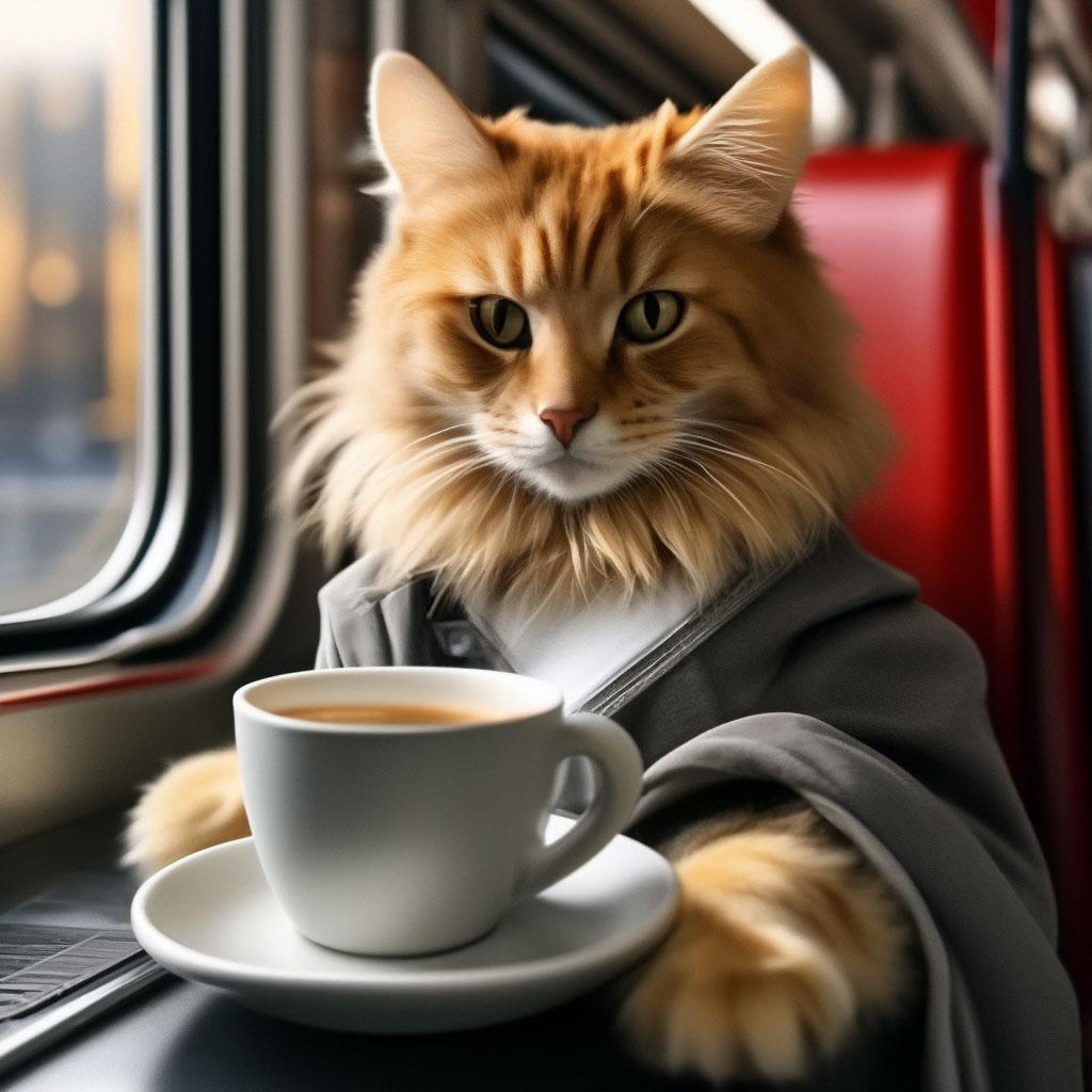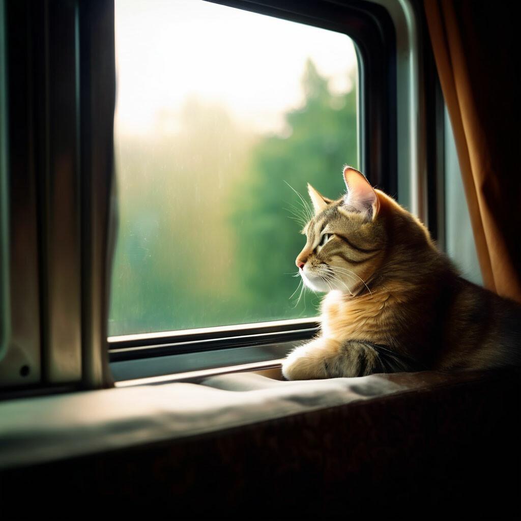 Кот едет в поезде