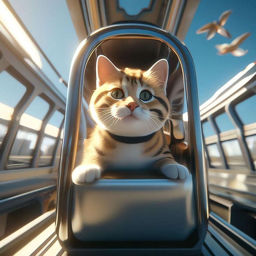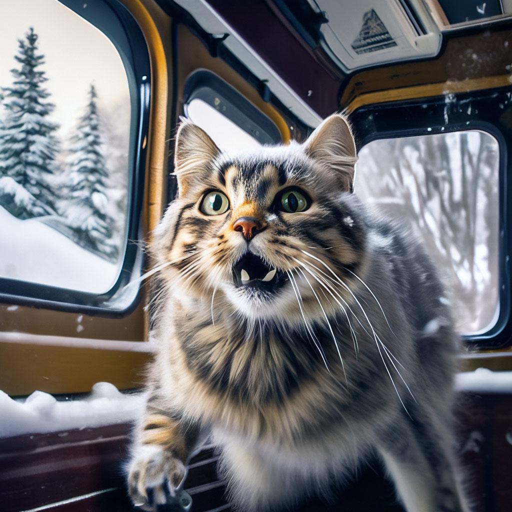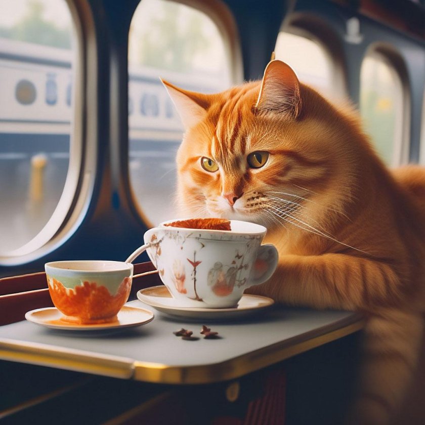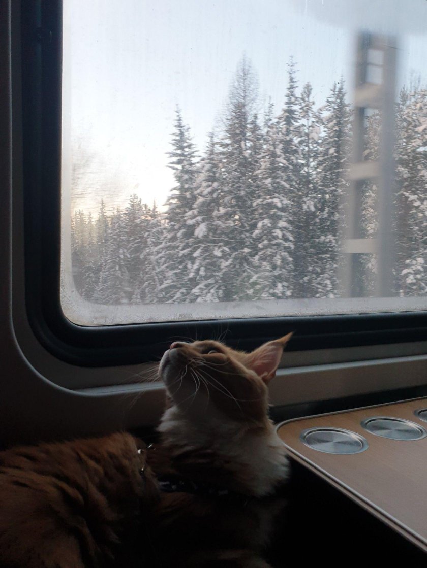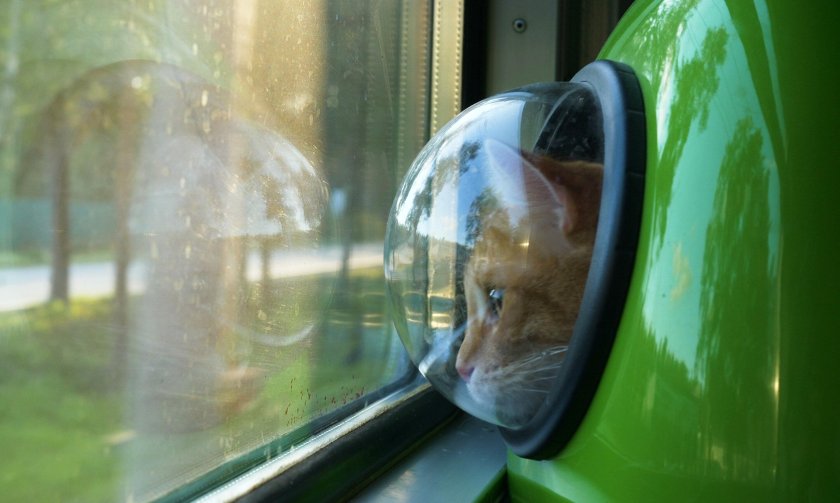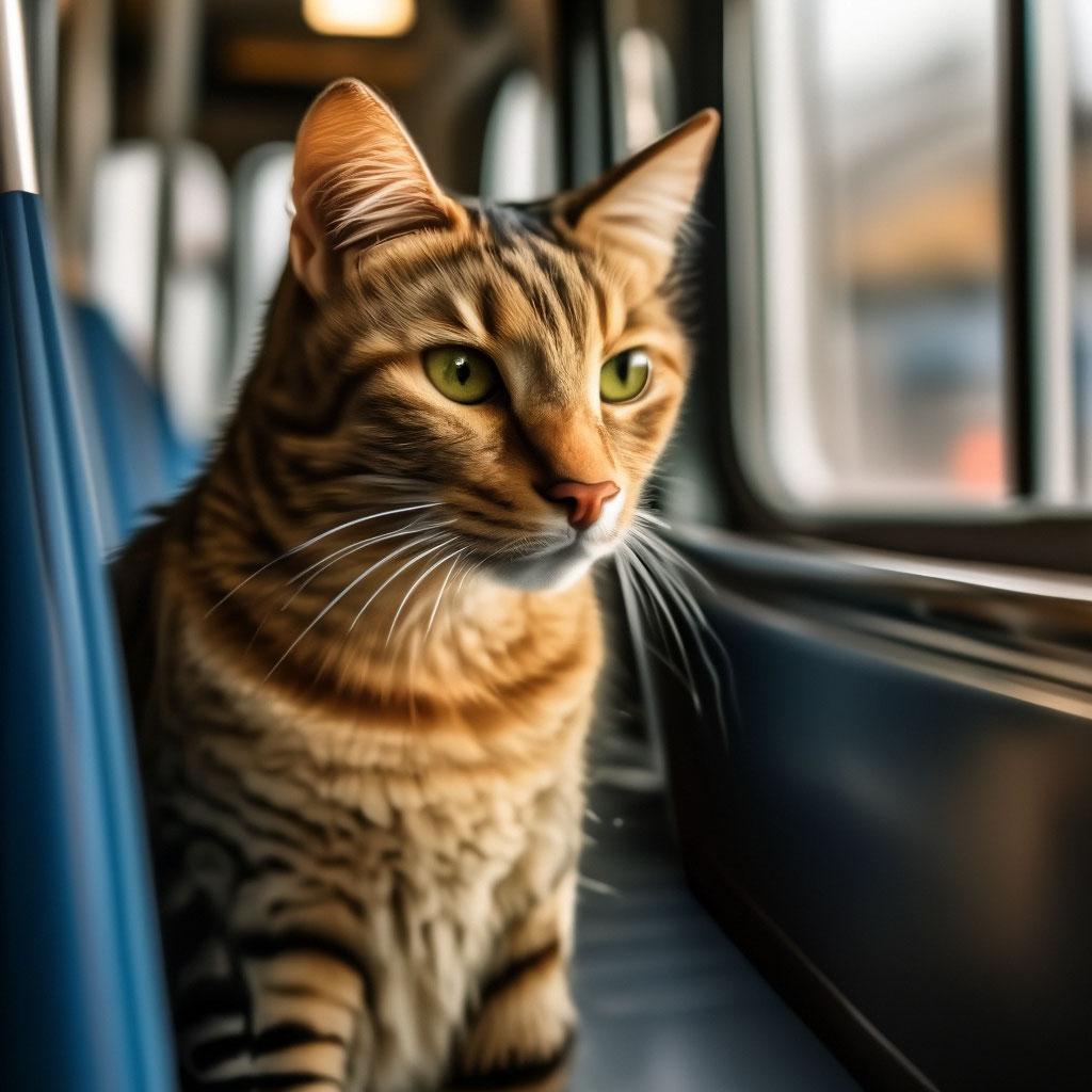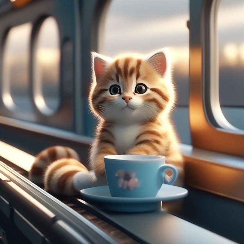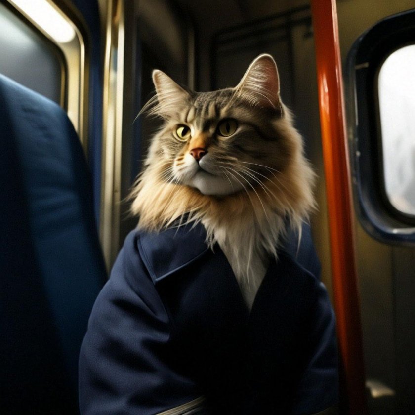 Кот едет в поезде