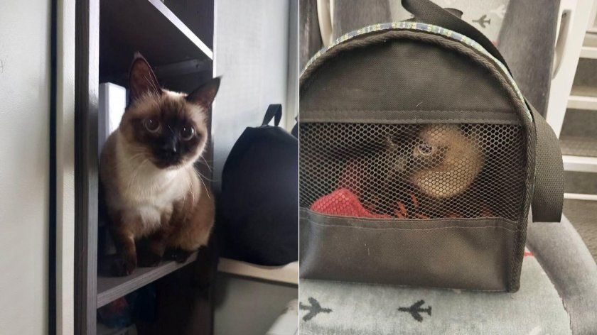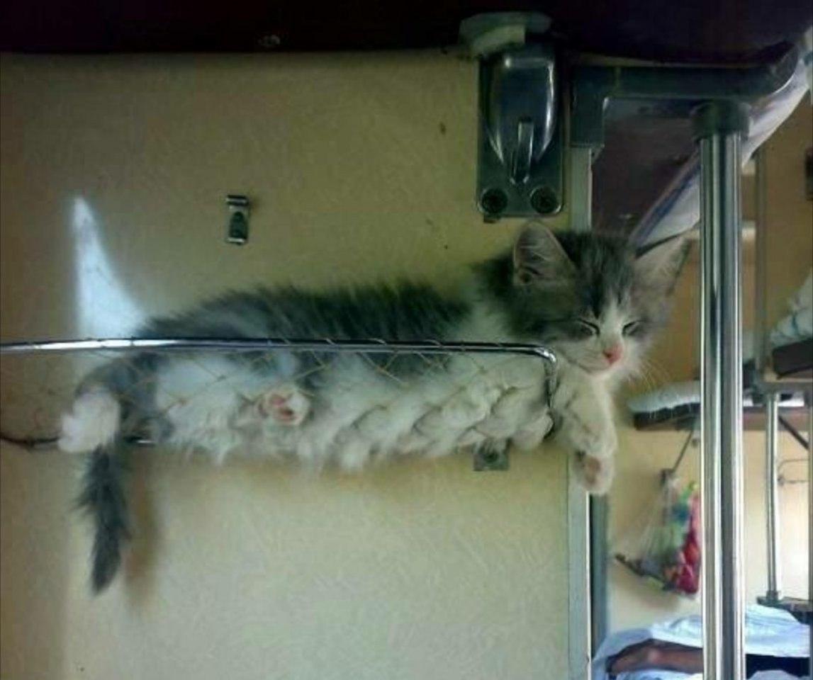 Кот на полке в поезде