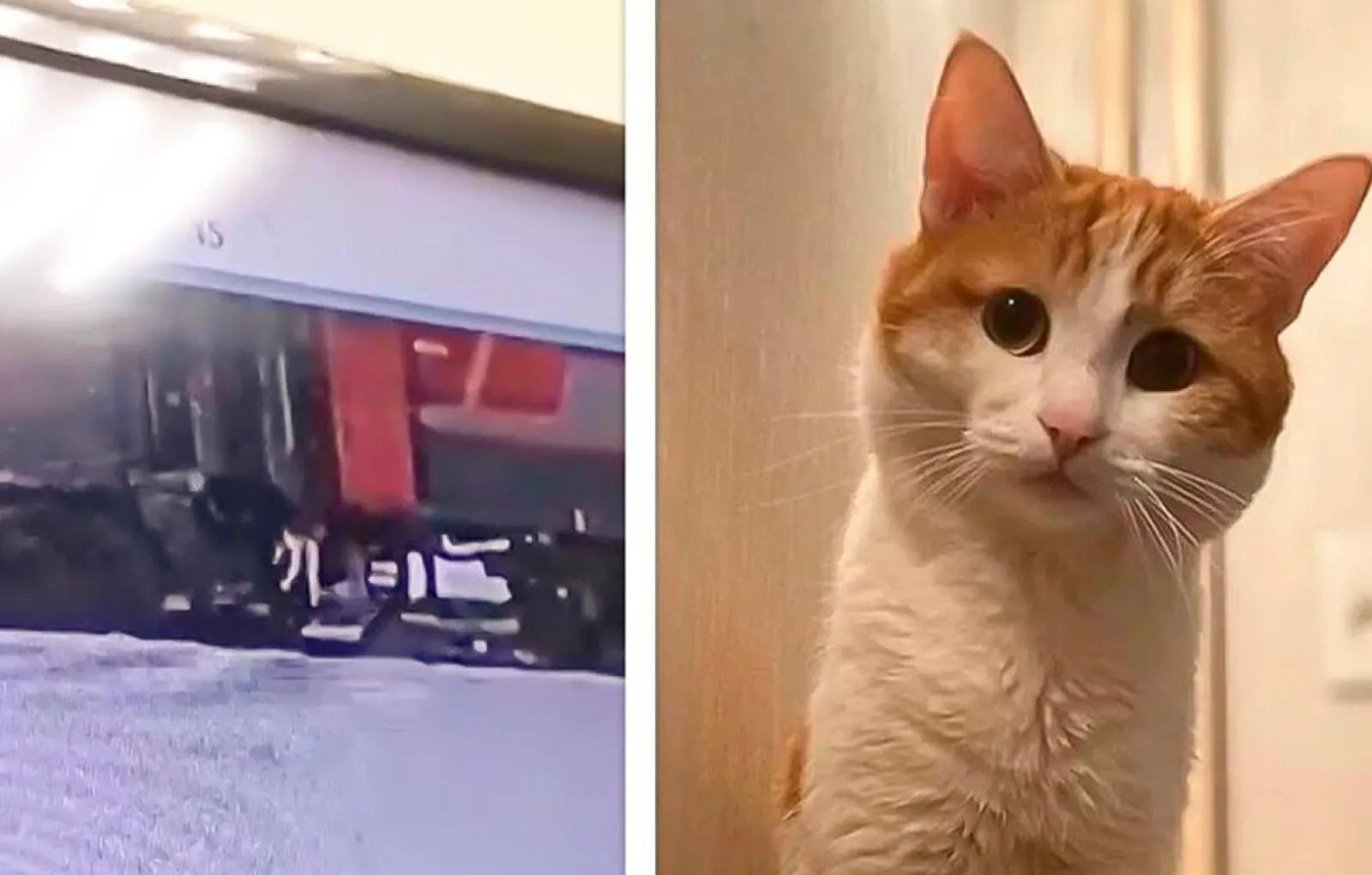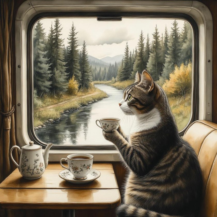 Открытка кот в поезде