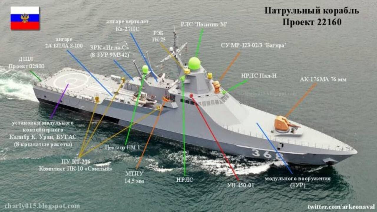 Патрульные корабли проекта 22160 схема