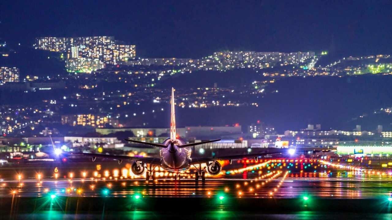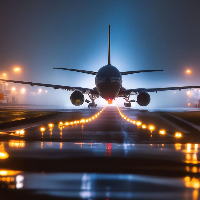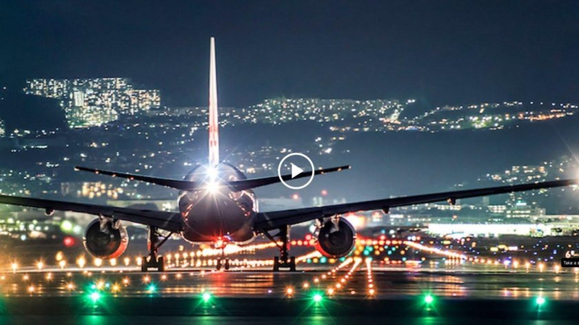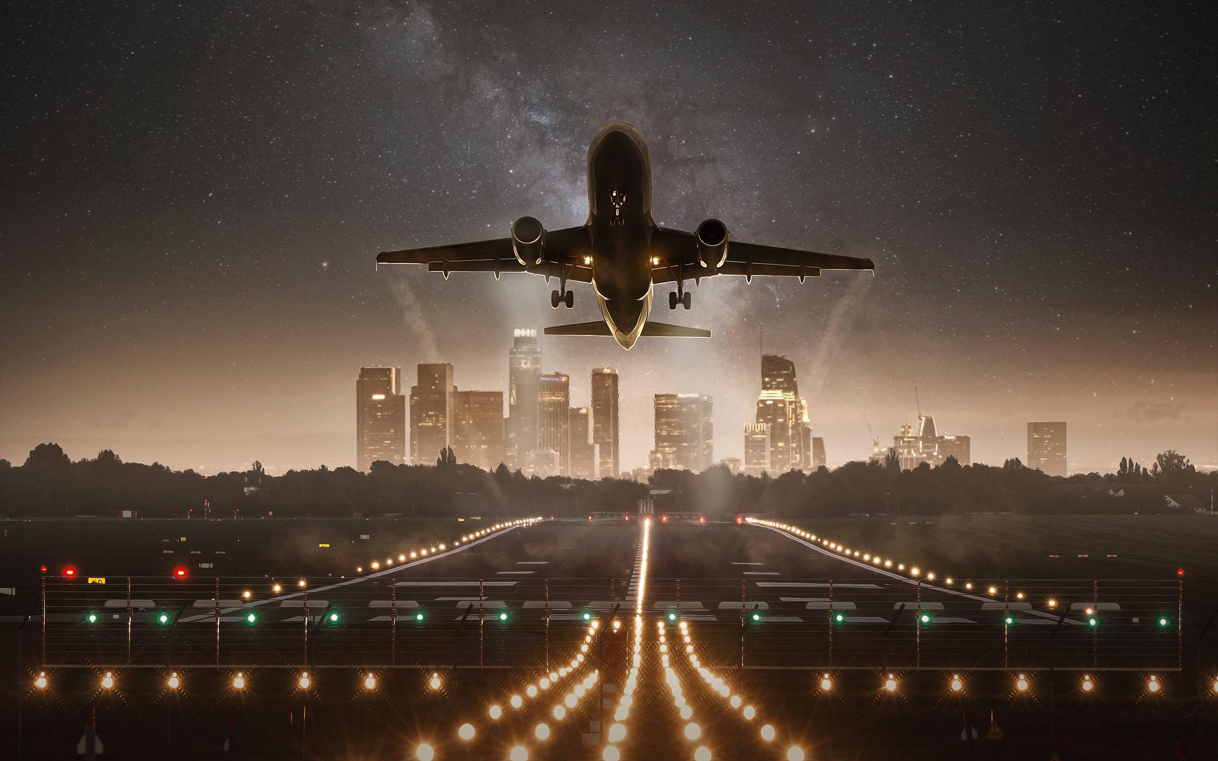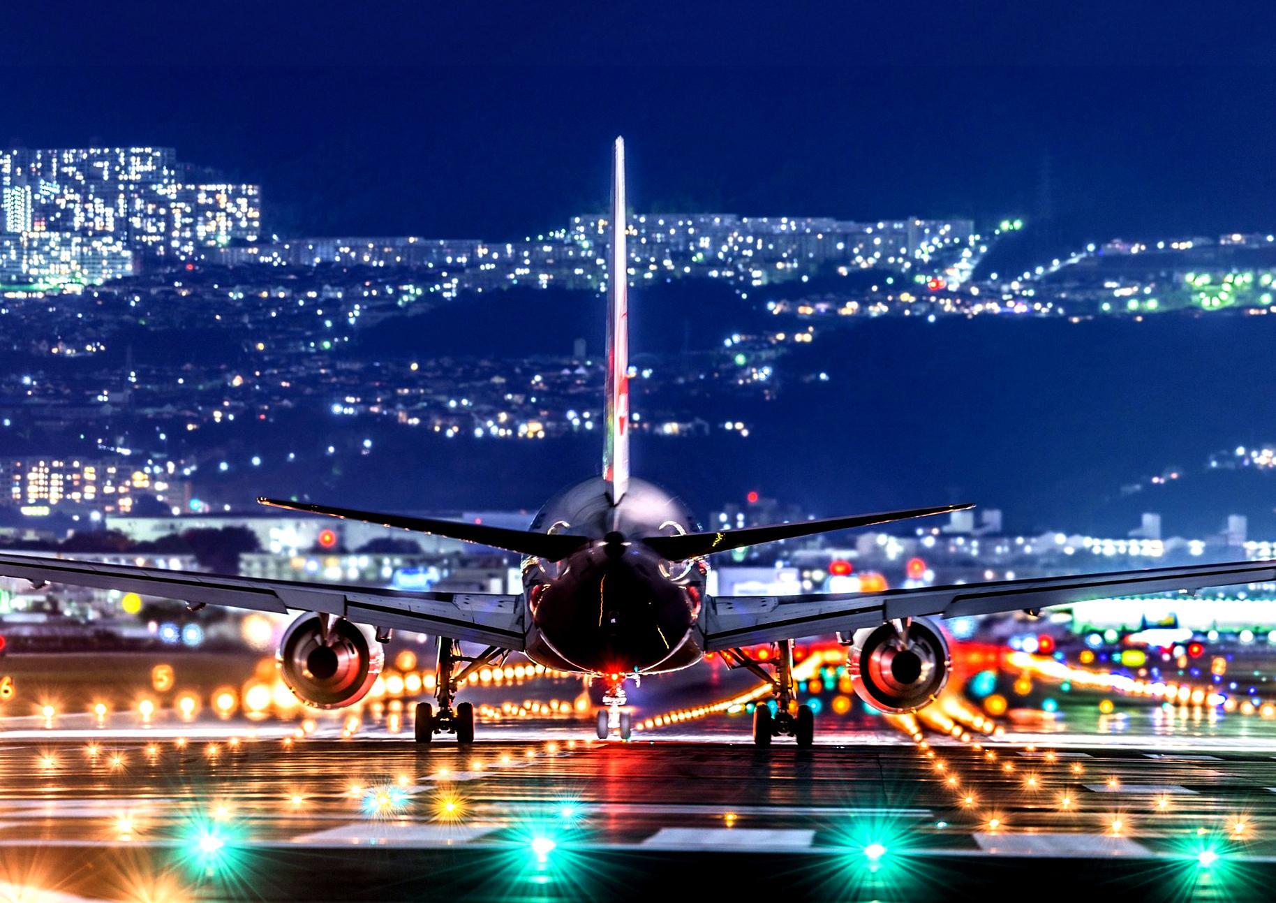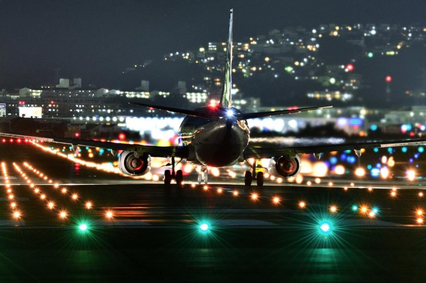 Самолёт взлетает ночью