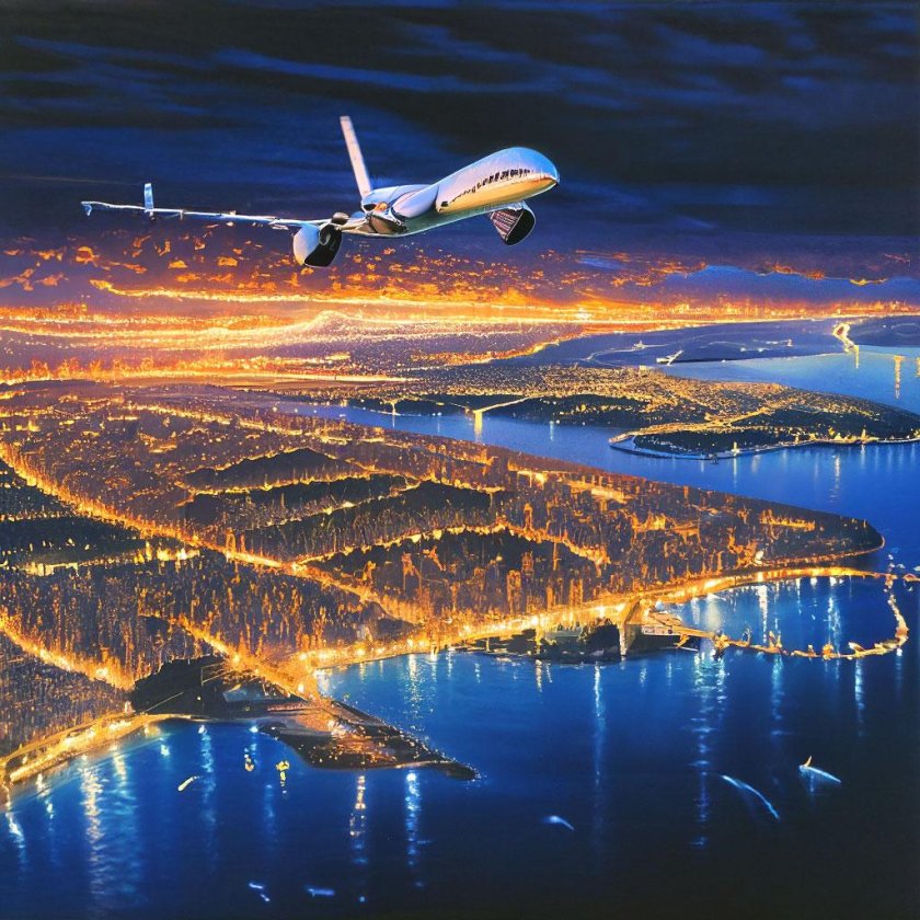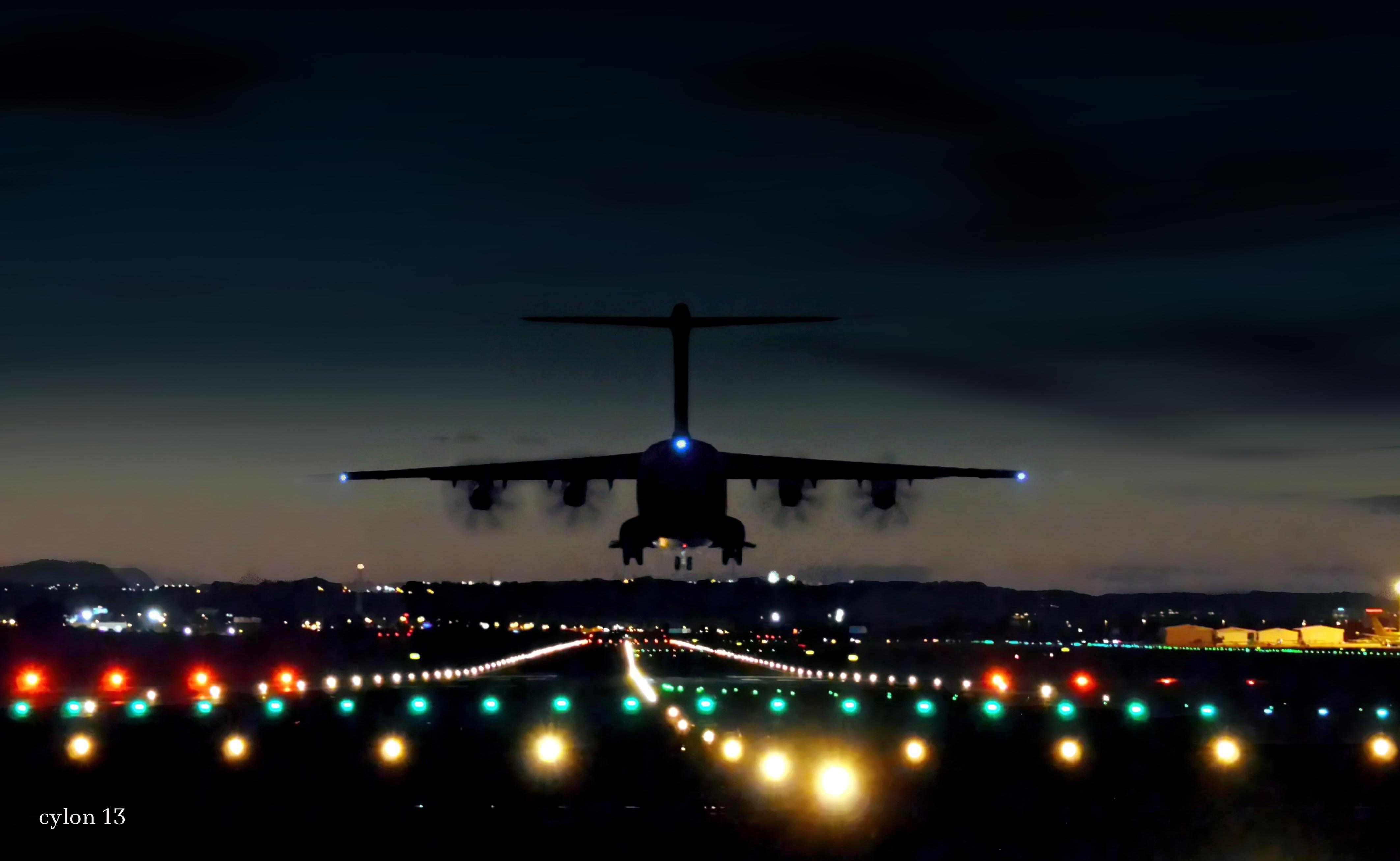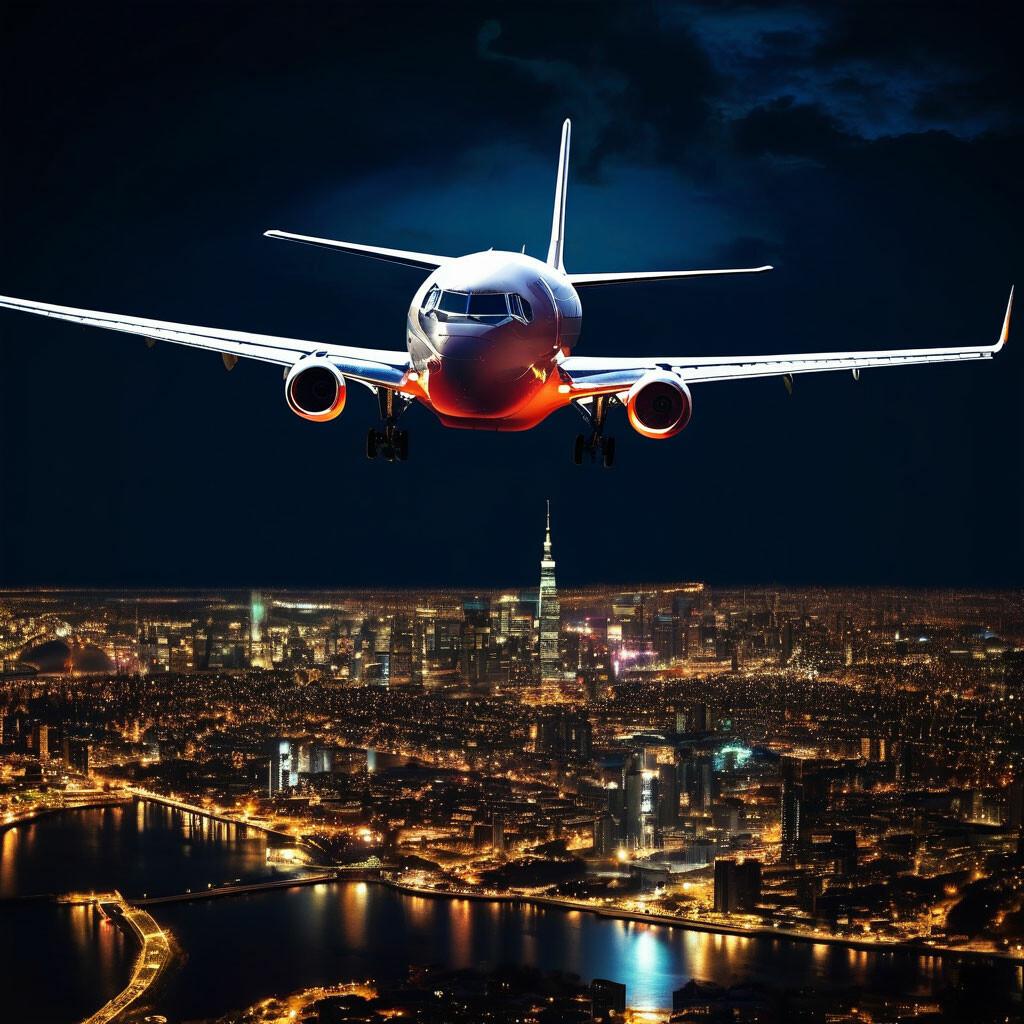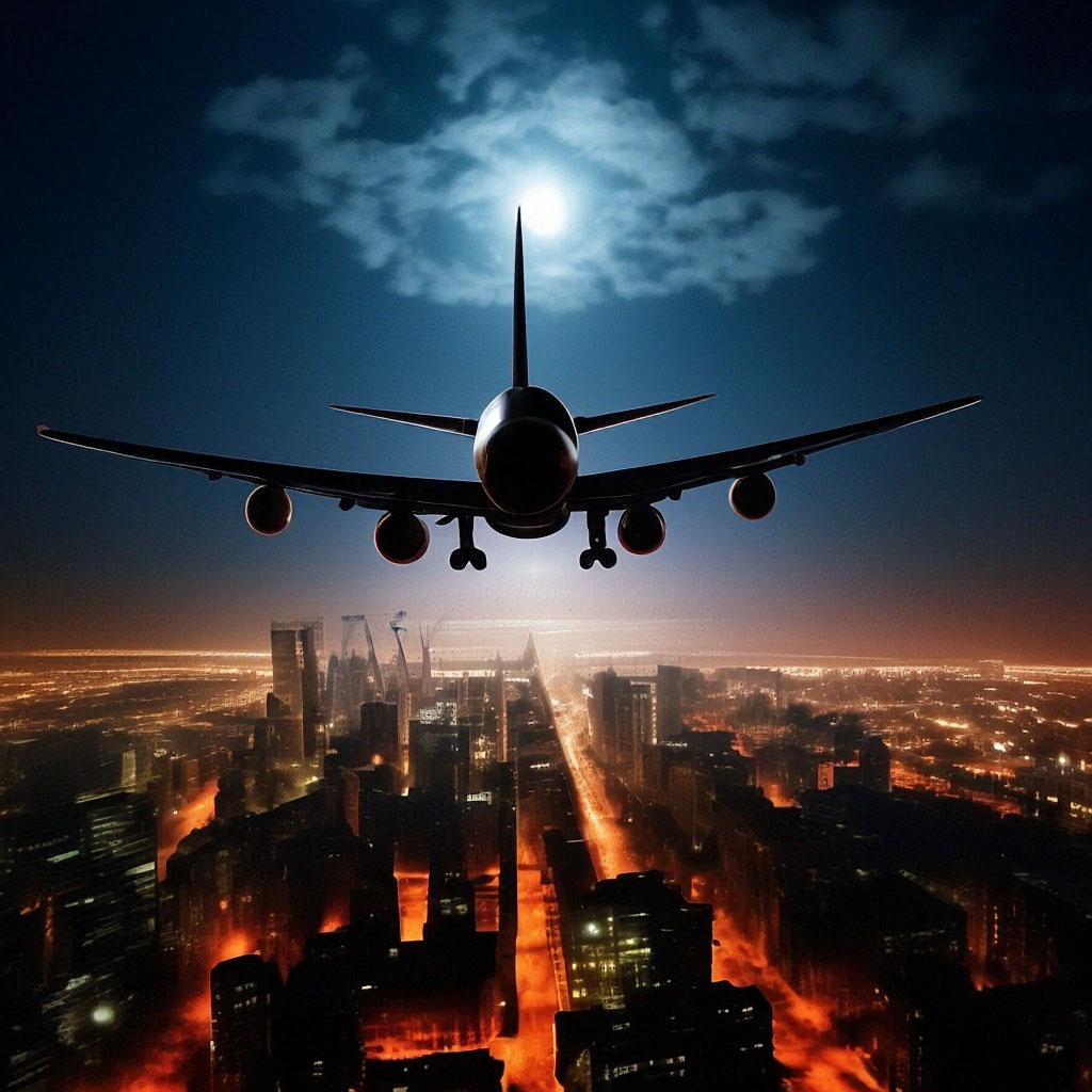 ![Самолет ночью]()