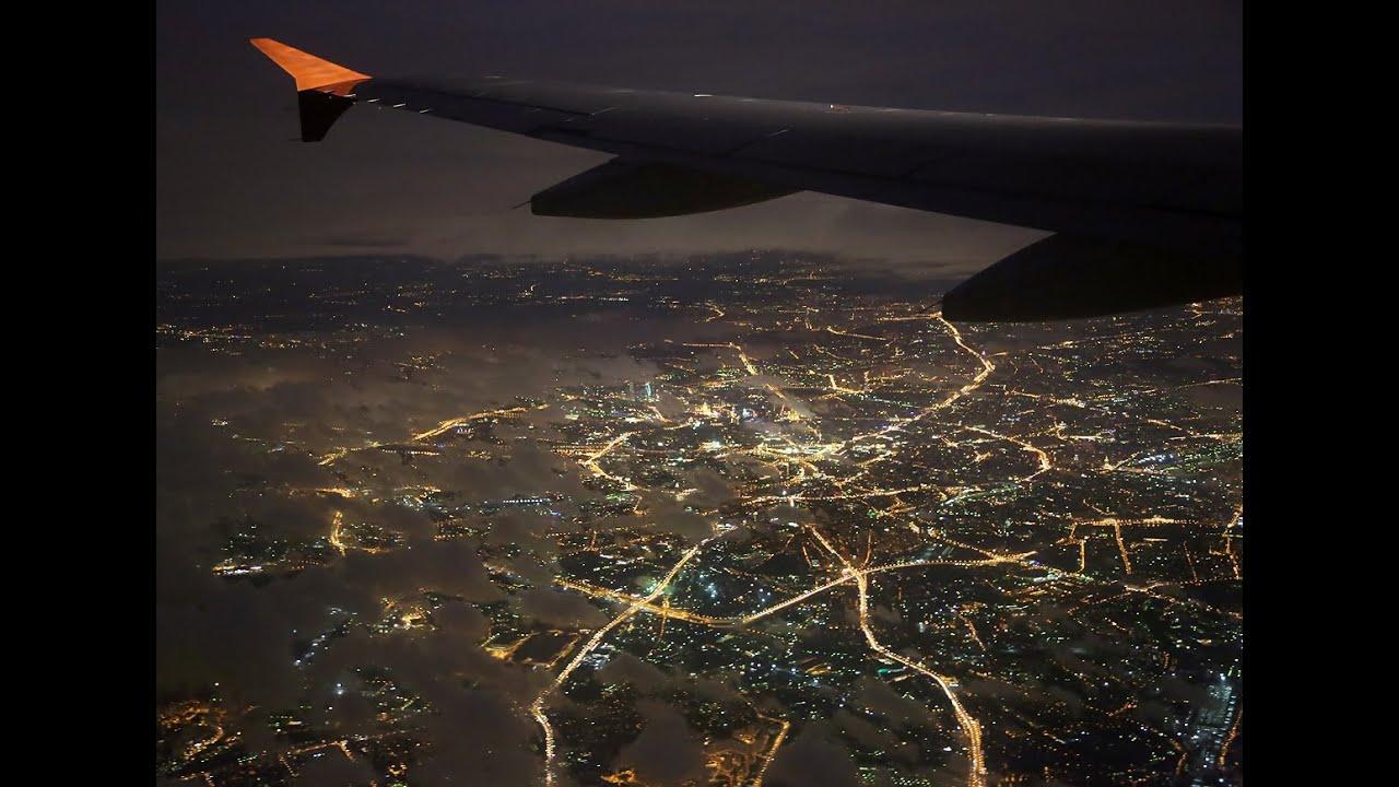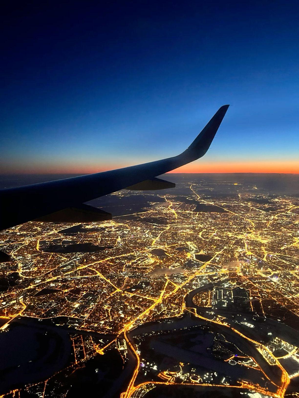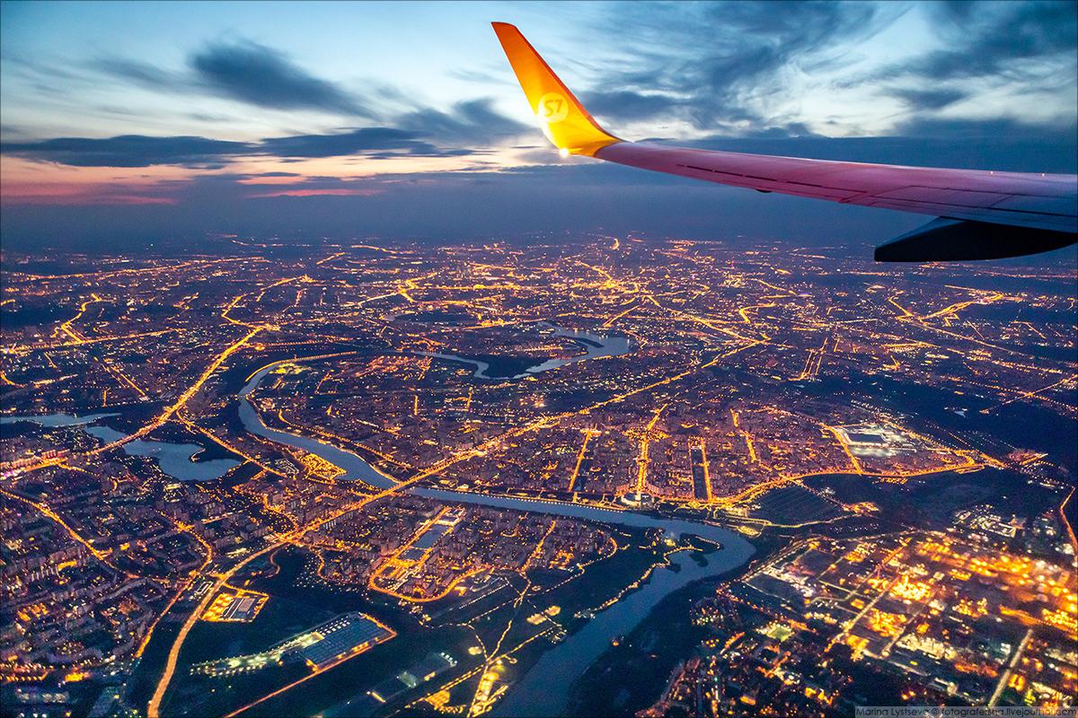 Ночная Москва из иллюминатора самолета