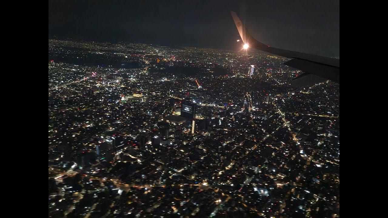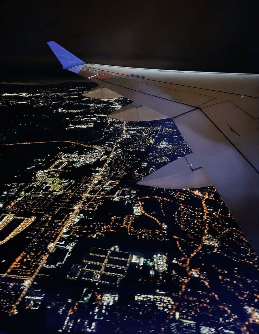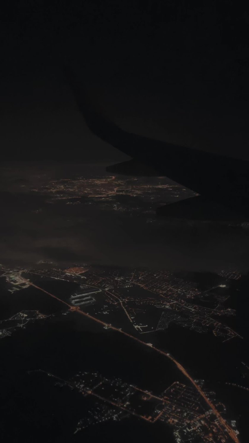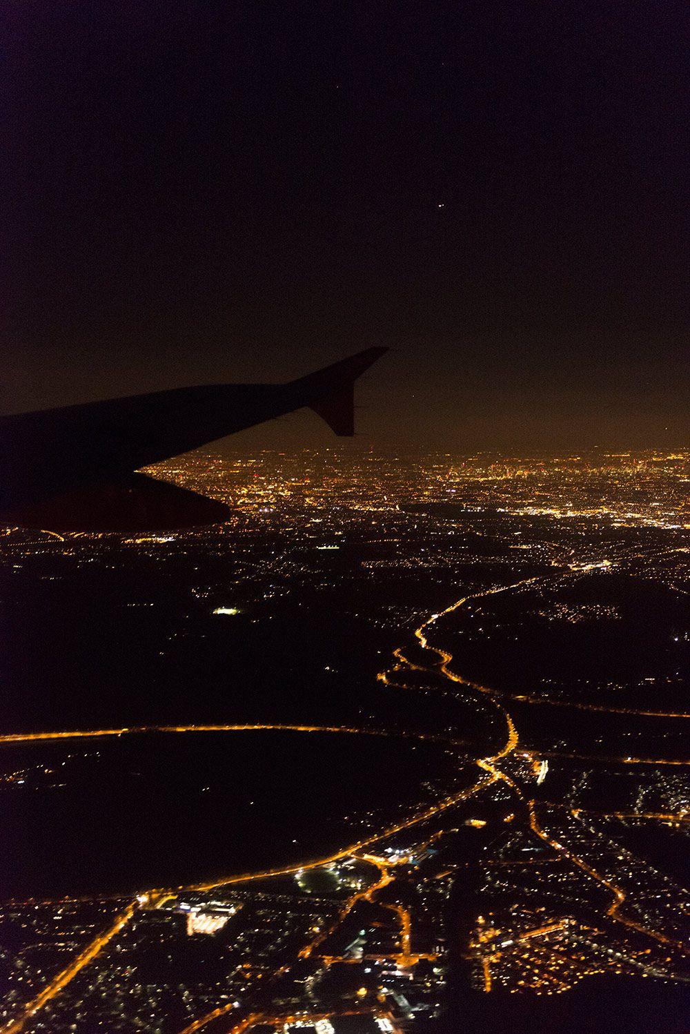 Ночная Москва из иллюминатора самолета