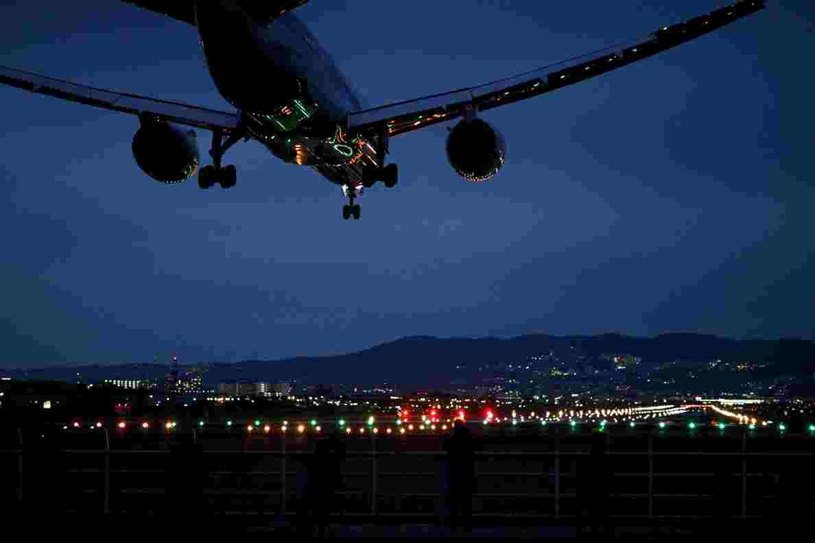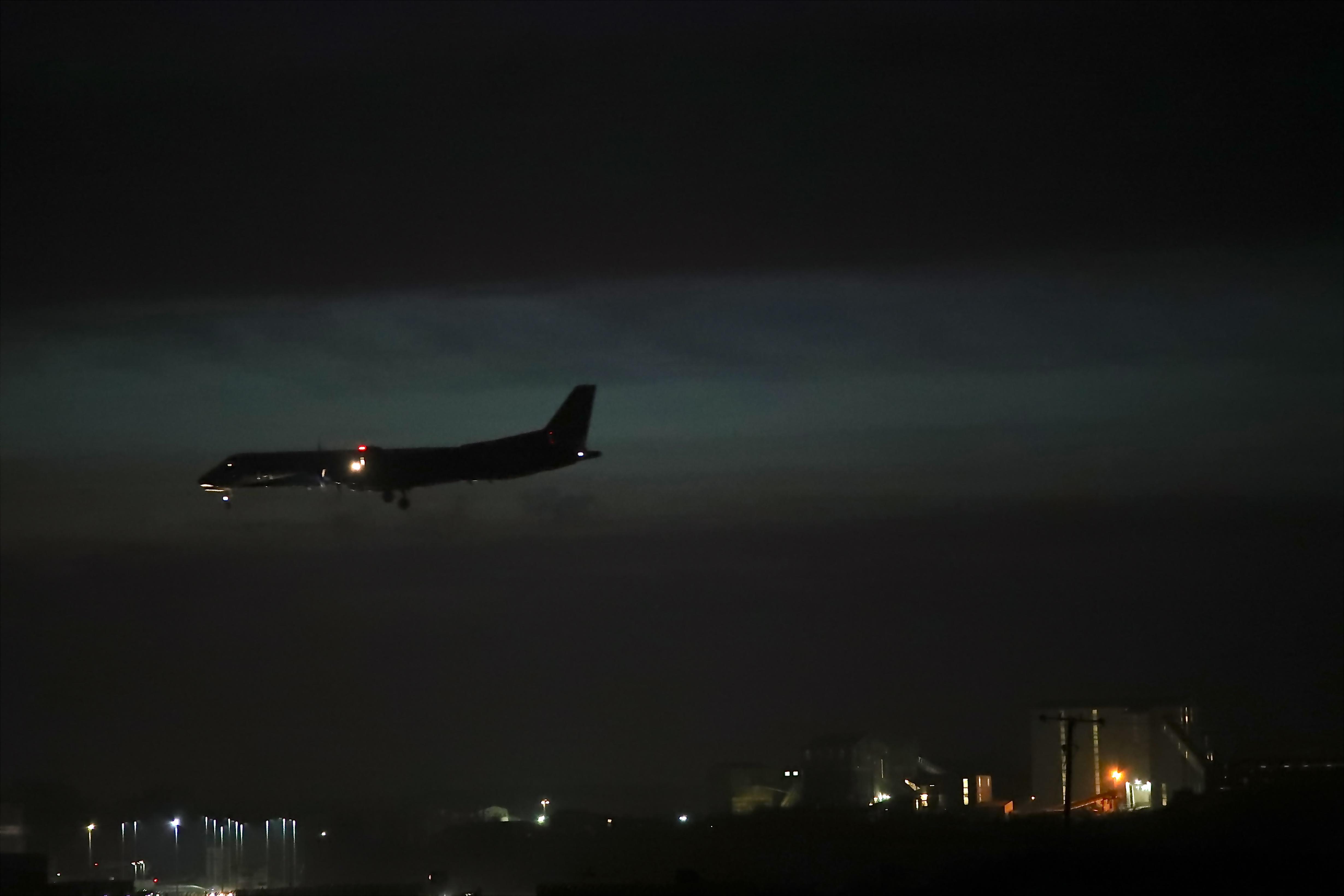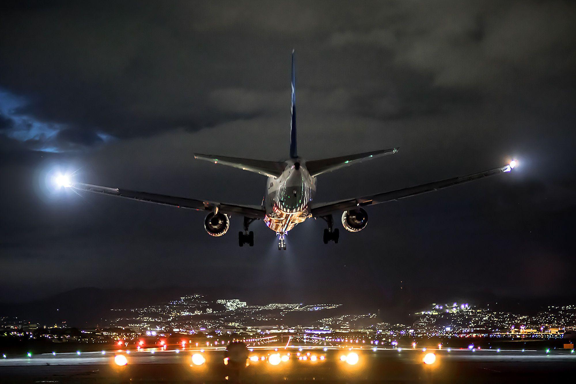 Самолёт вид спереди ночь