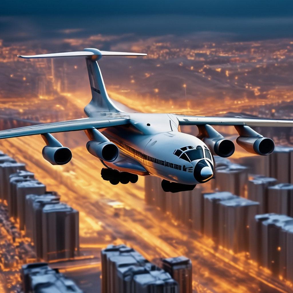Самолет в небе над городом