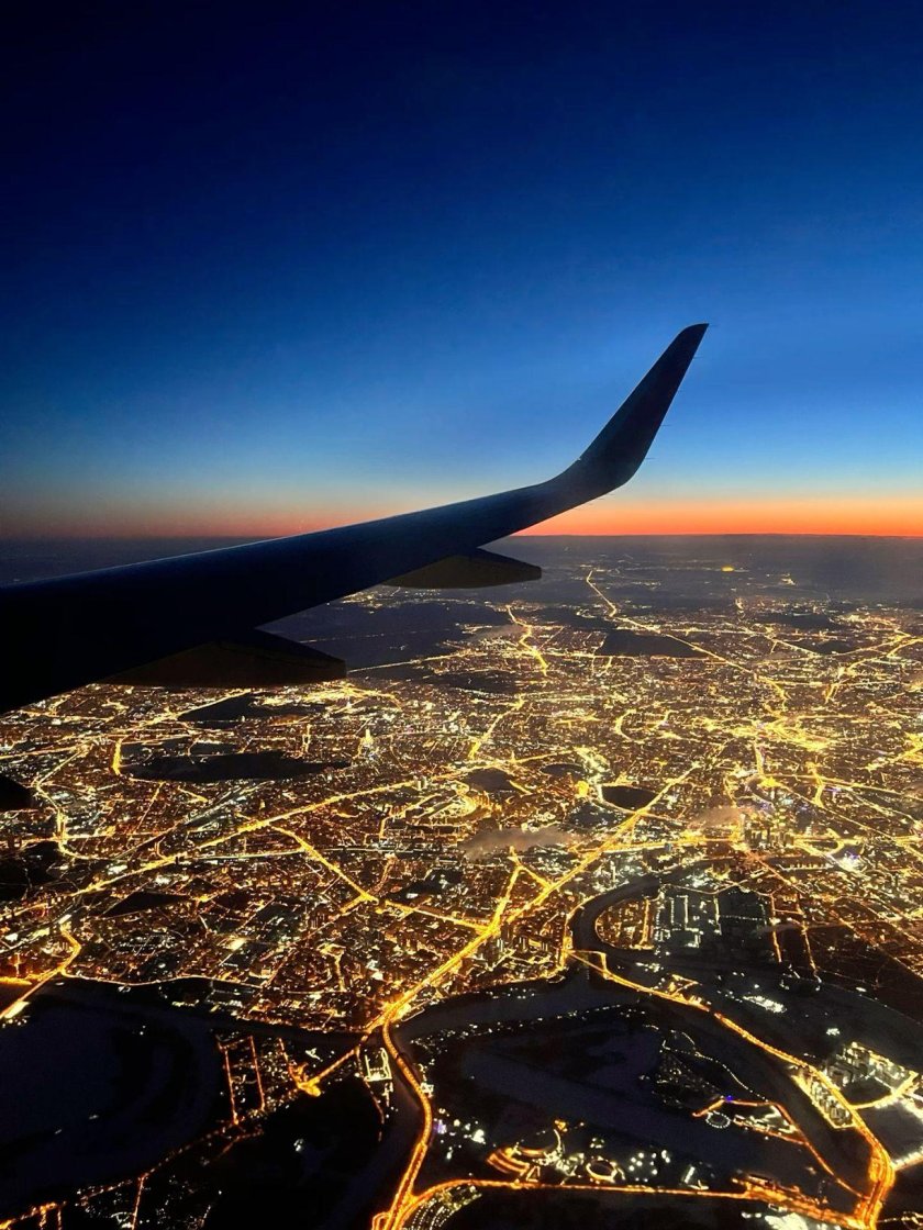 Ночной Санкт-Петербург из иллюминатора
