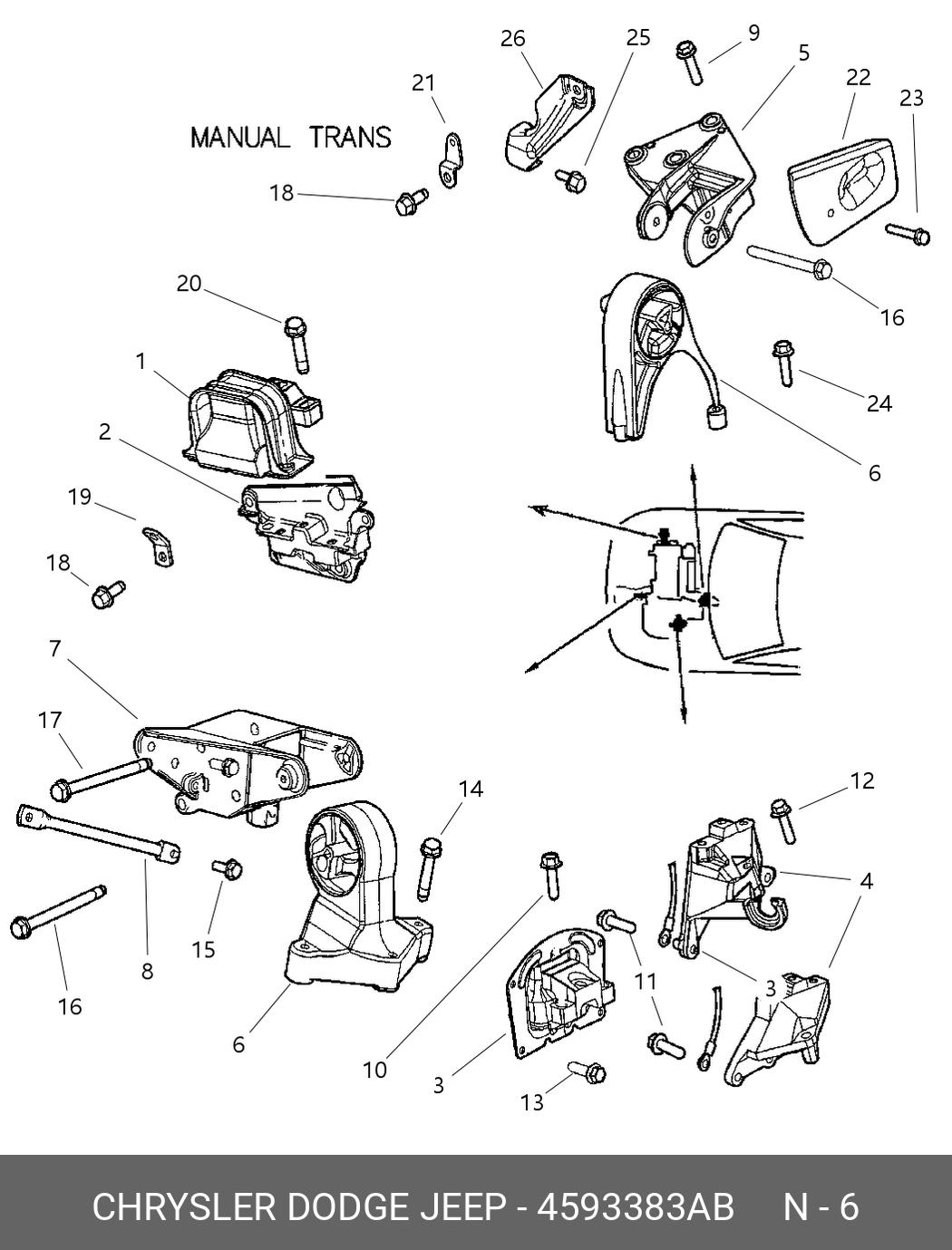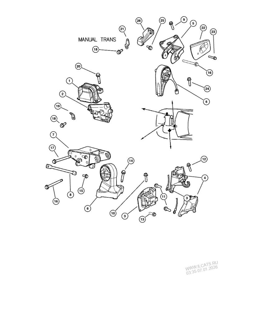 ![Подушка двигателя Крайслер 2.4]()