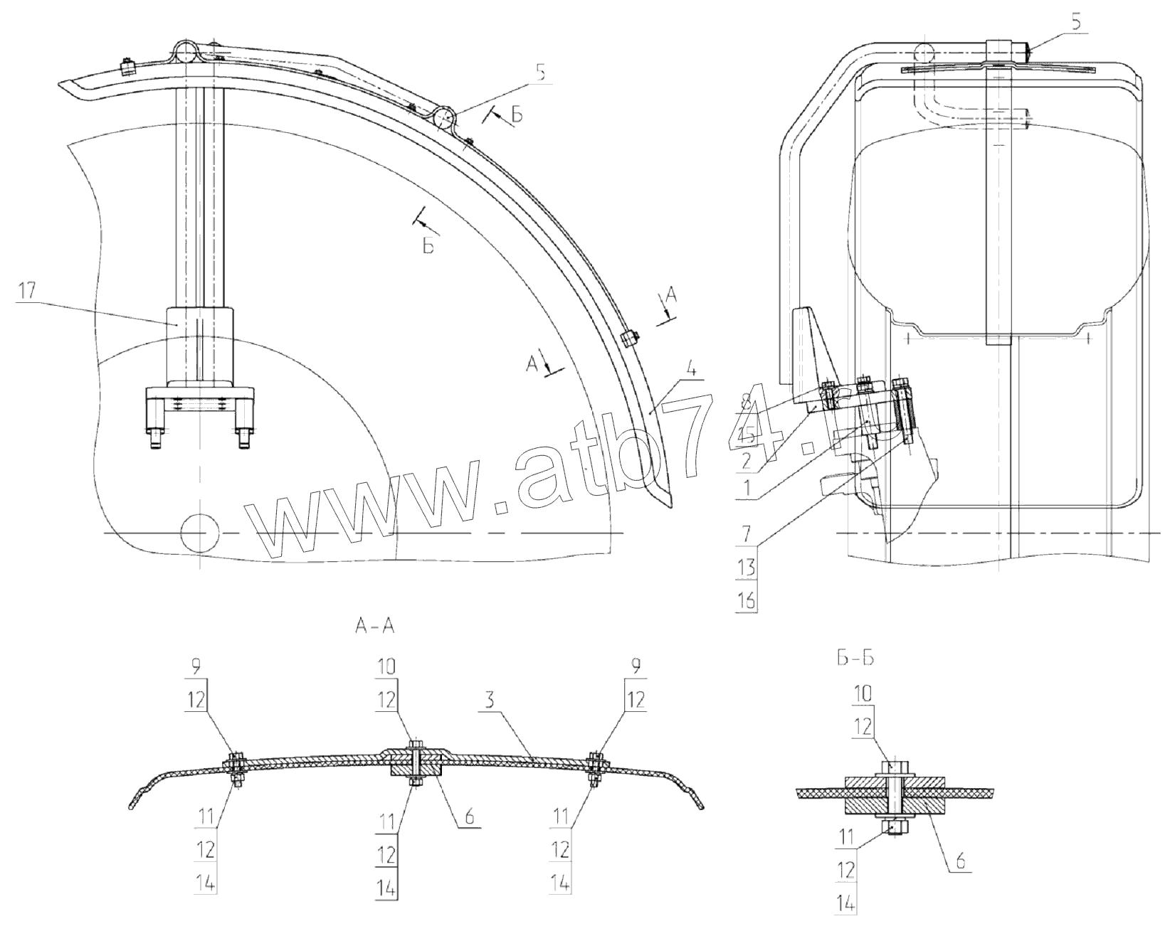 Крепление переднего крыла МТЗ 1221
