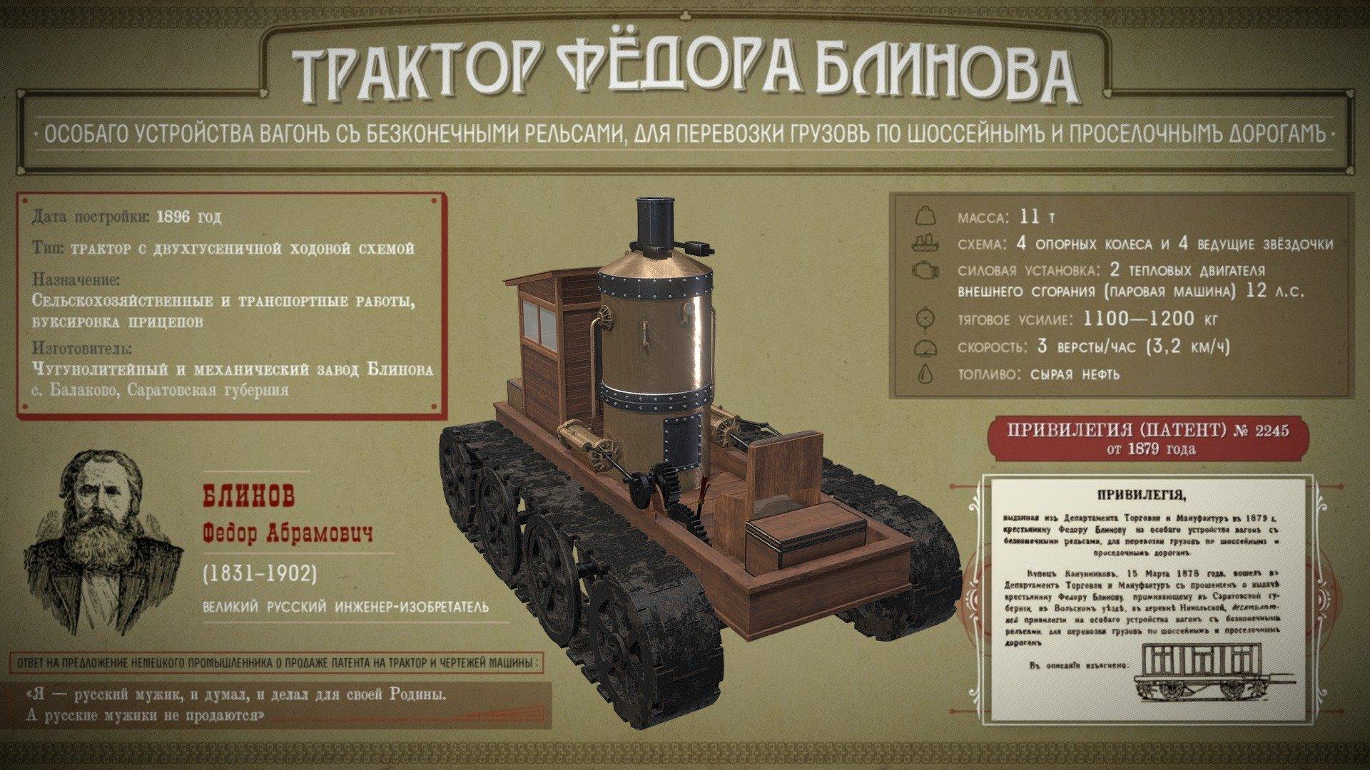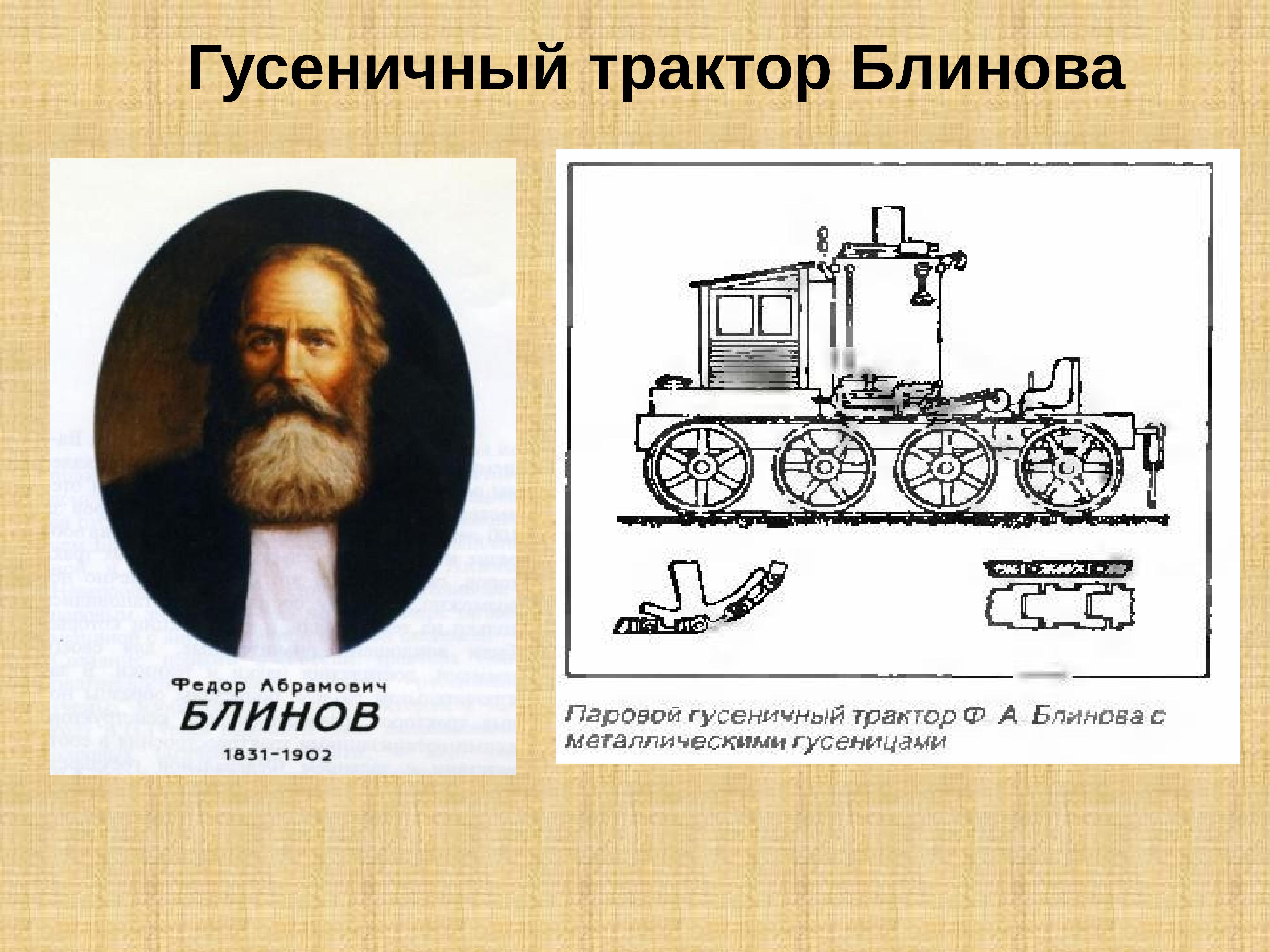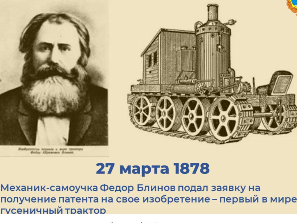 ![Первый в мире гусеничный трактор ф а Блинова]()