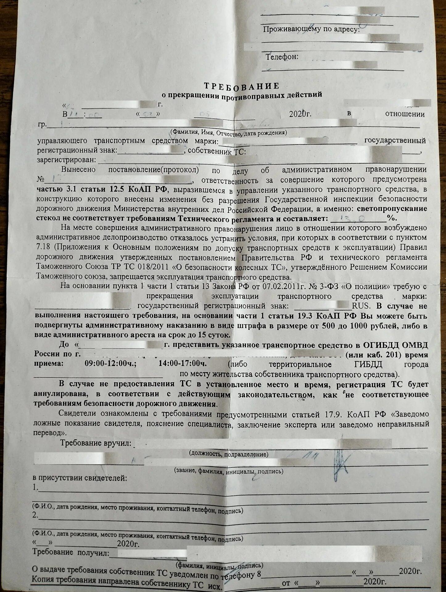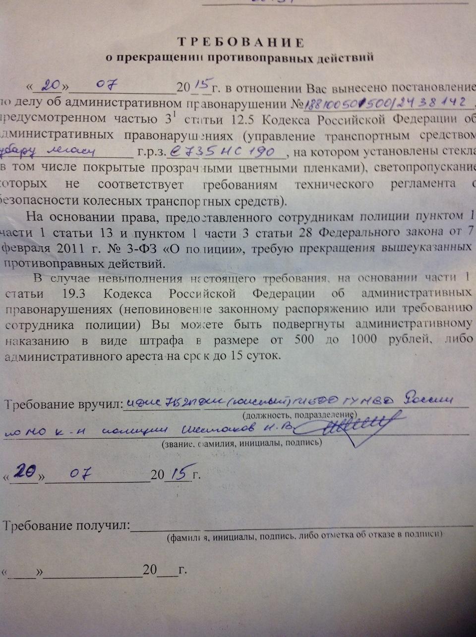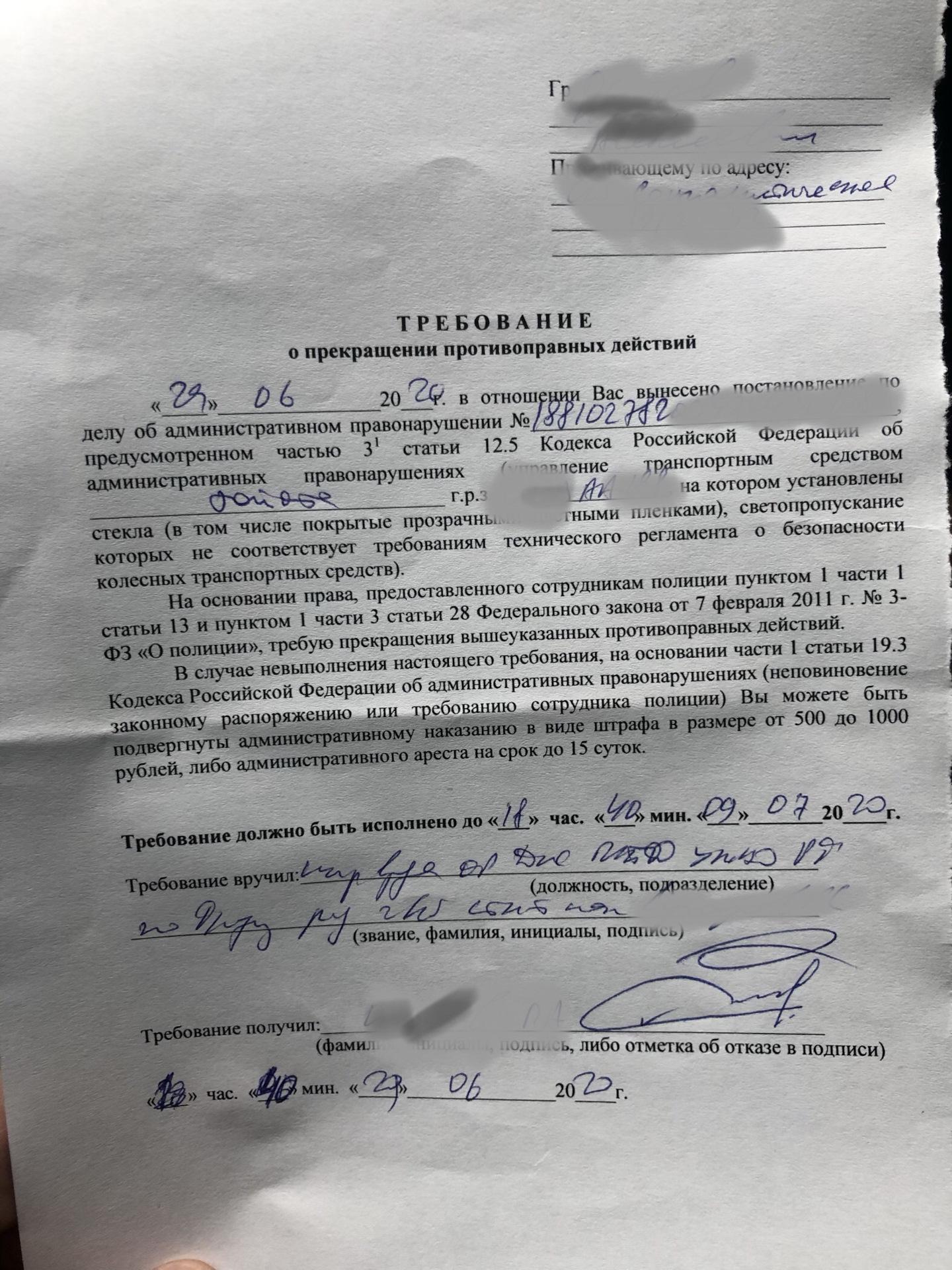 Штраф за тонировку в 2025 --- 07 янв 1 0 0 Протокол за тонировку и требование Требование об устранении нарушений тонировка Постановление за тонировку Постановление об административном правонарушении ГИБДД за тонировку Как выглядит требование за тонировку
