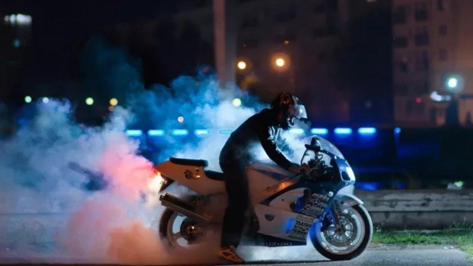Человек на мотоцикле ночью