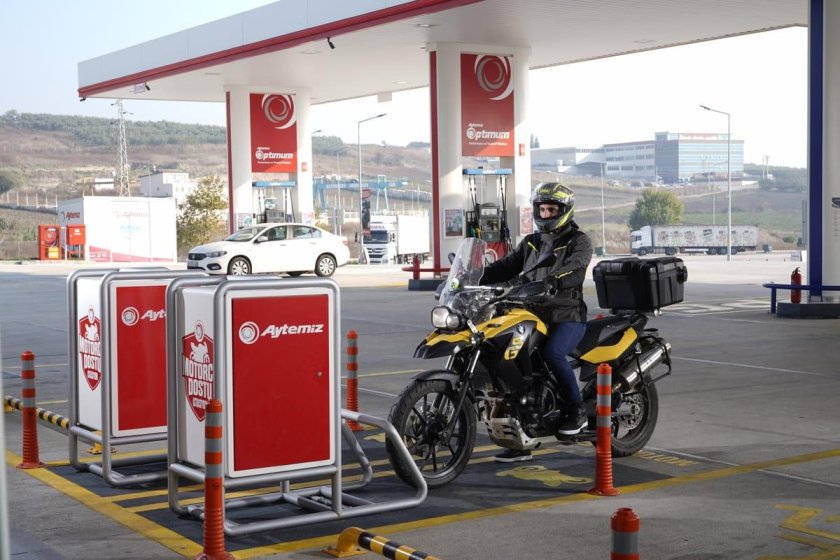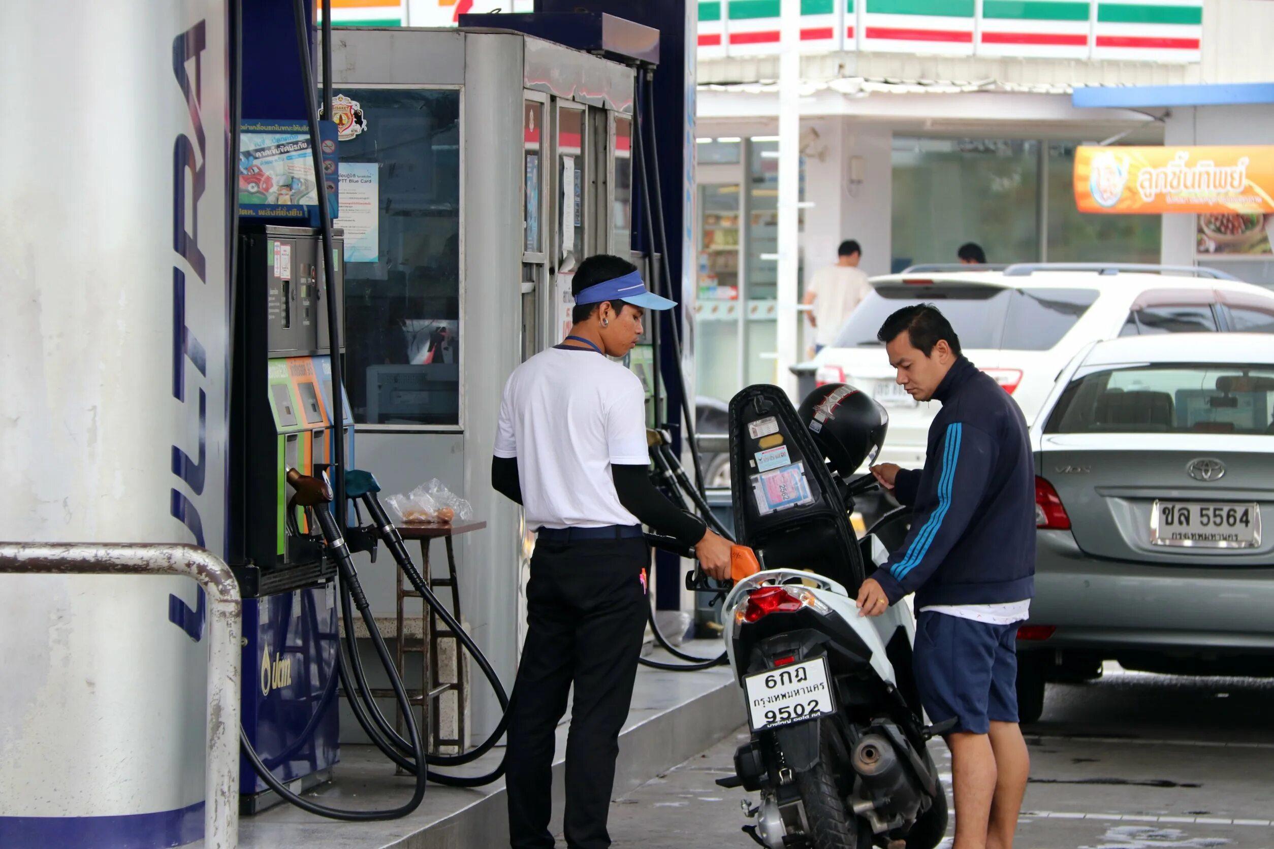 Байк на заправке