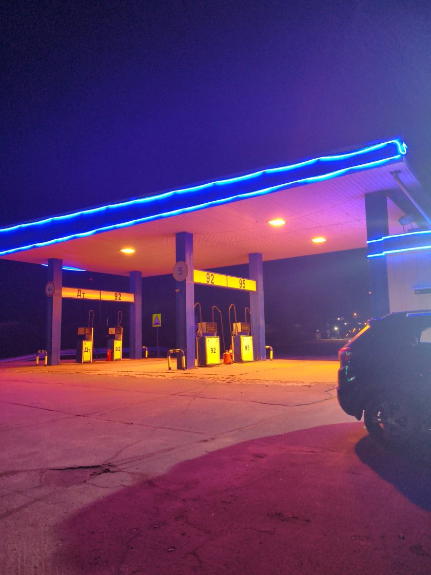 Мотоцикл ночью на заправке