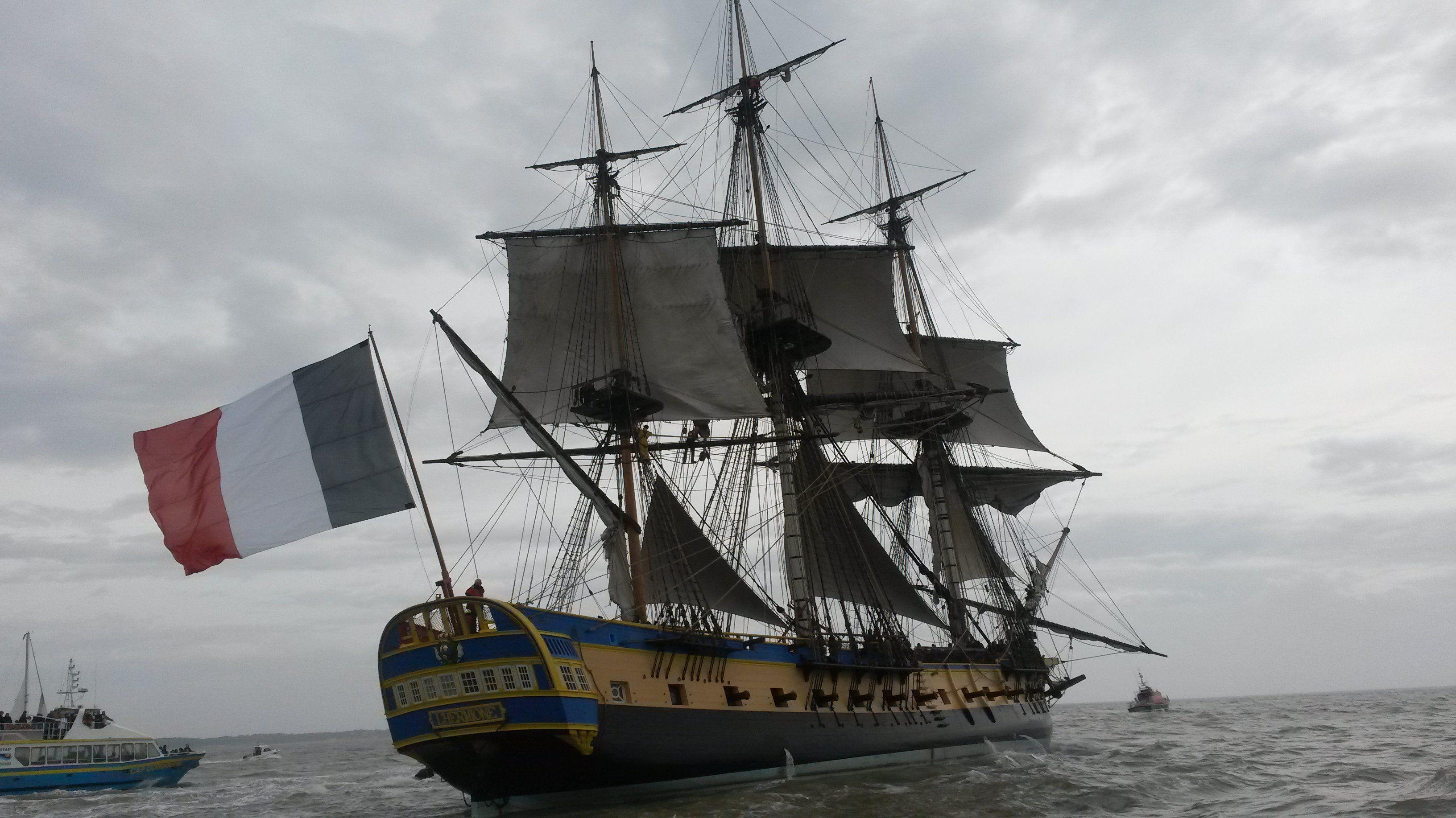 ![Французский парусный Фрегат Hermione]()