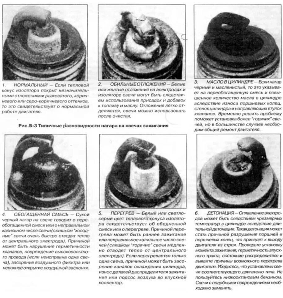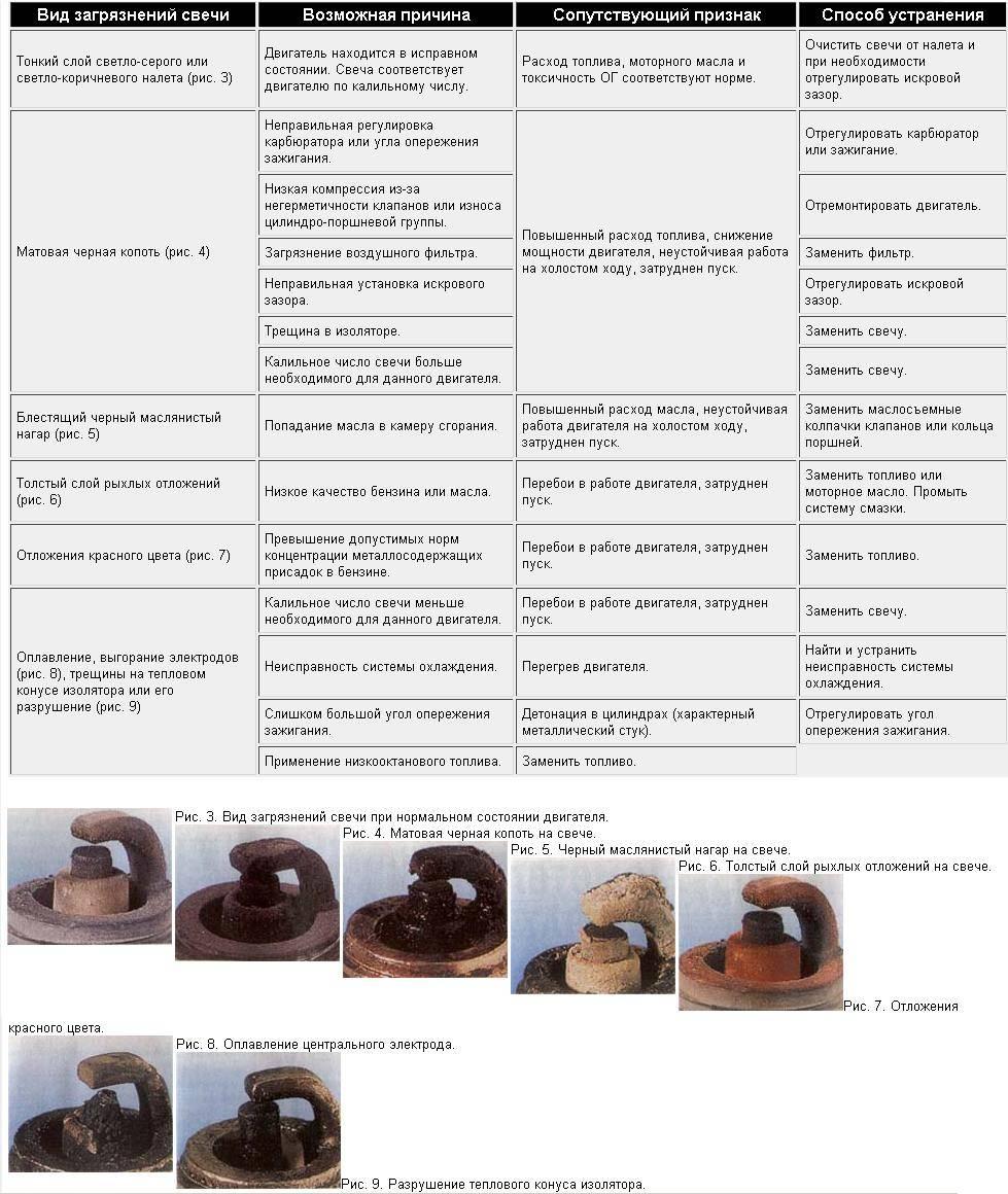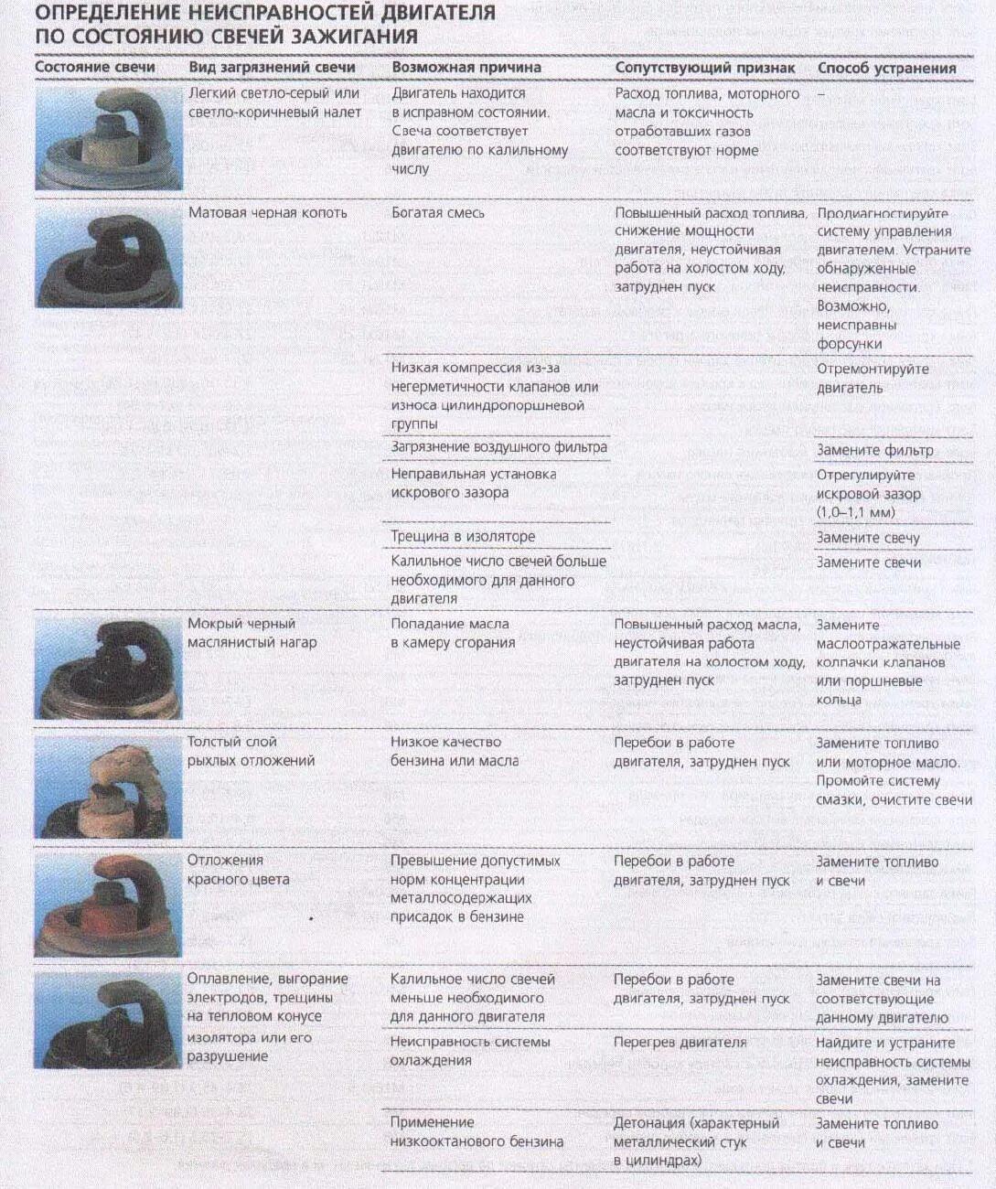 Таблица нагара свечей зажигания
