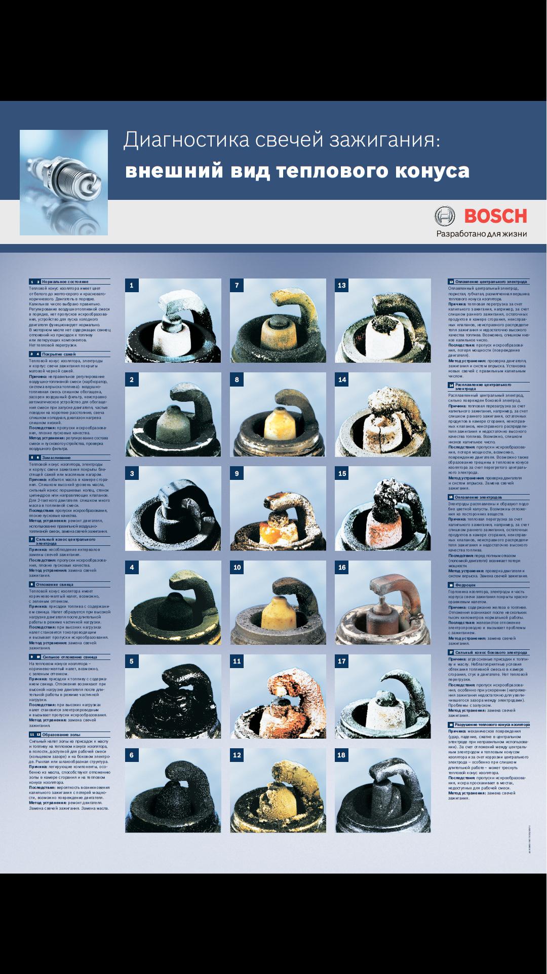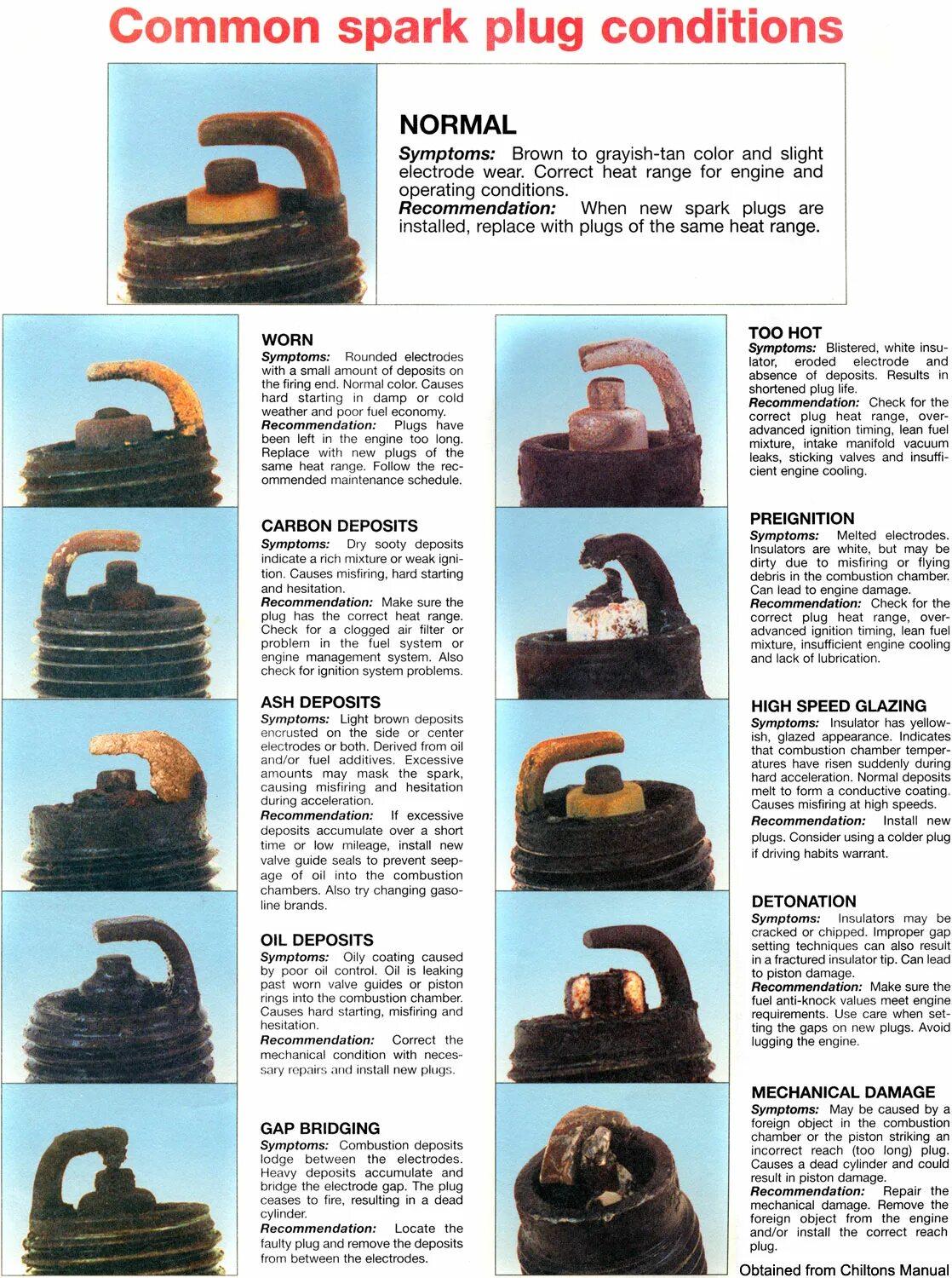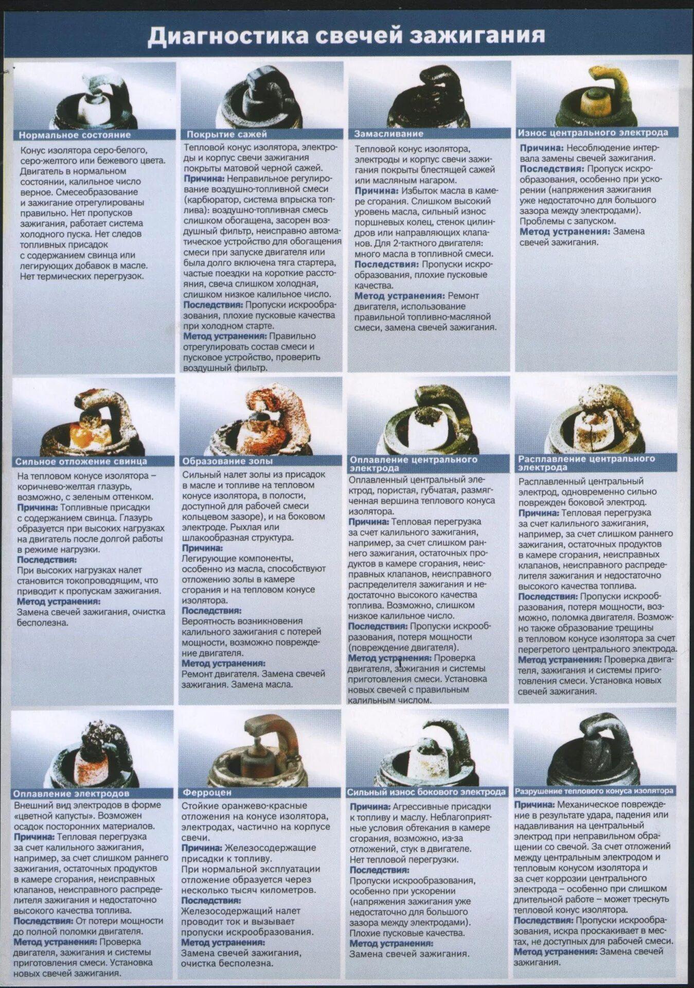 Таблица нагара свечей зажигания