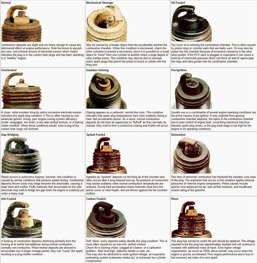 Определить по свечам зажигания состояние двигателя