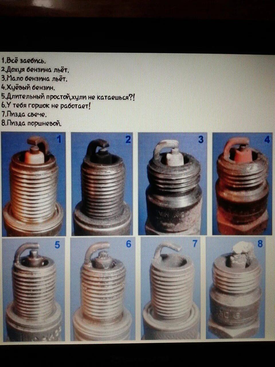 Определить по свечам состояние двигателя