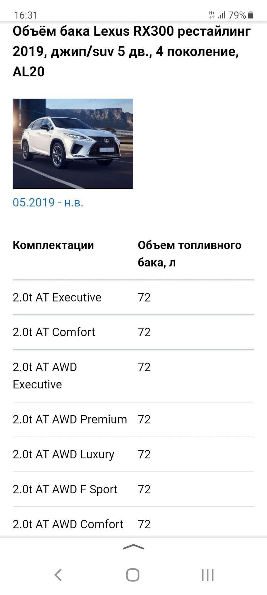 Расход топлива Lexus rx400h