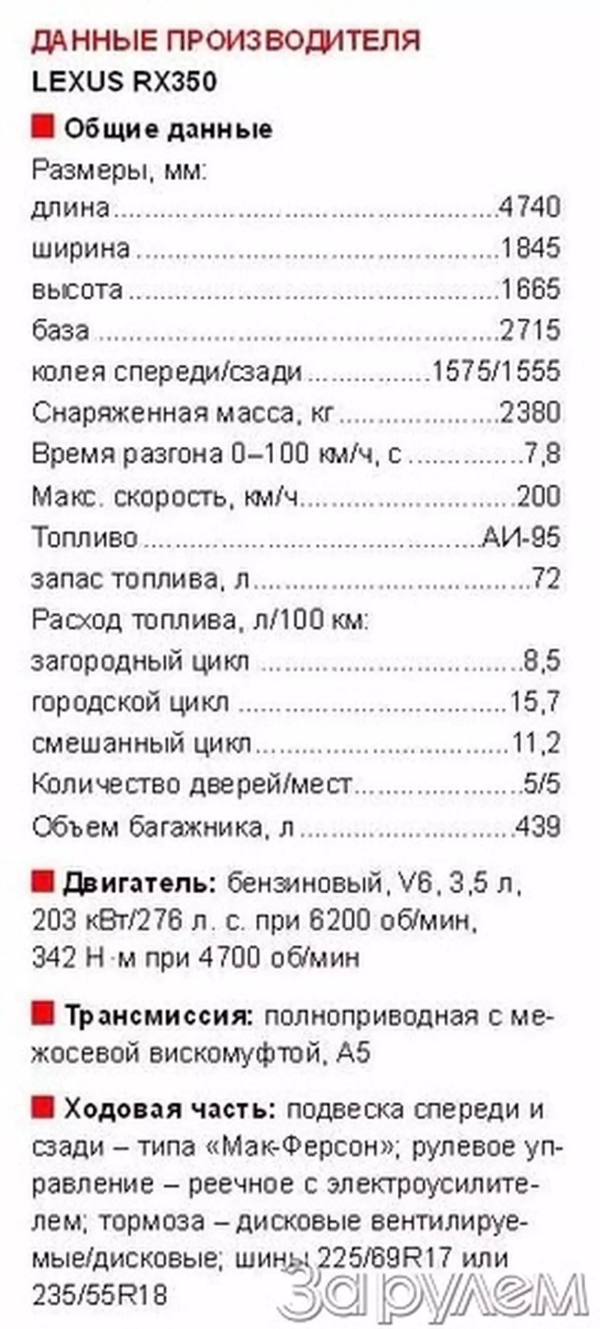 Расход топлива Лексус РХ 350