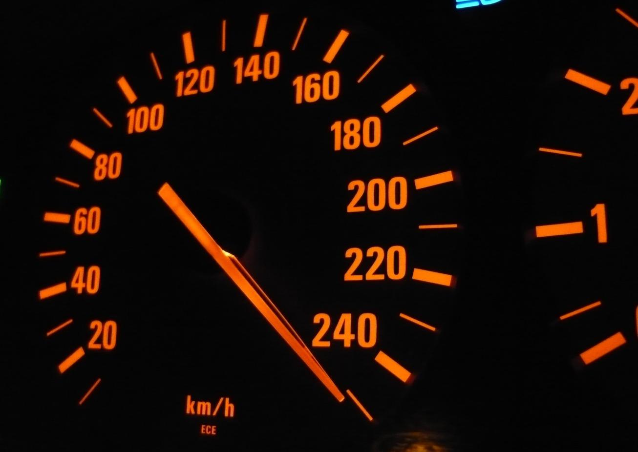 Спидометр машины на скорости