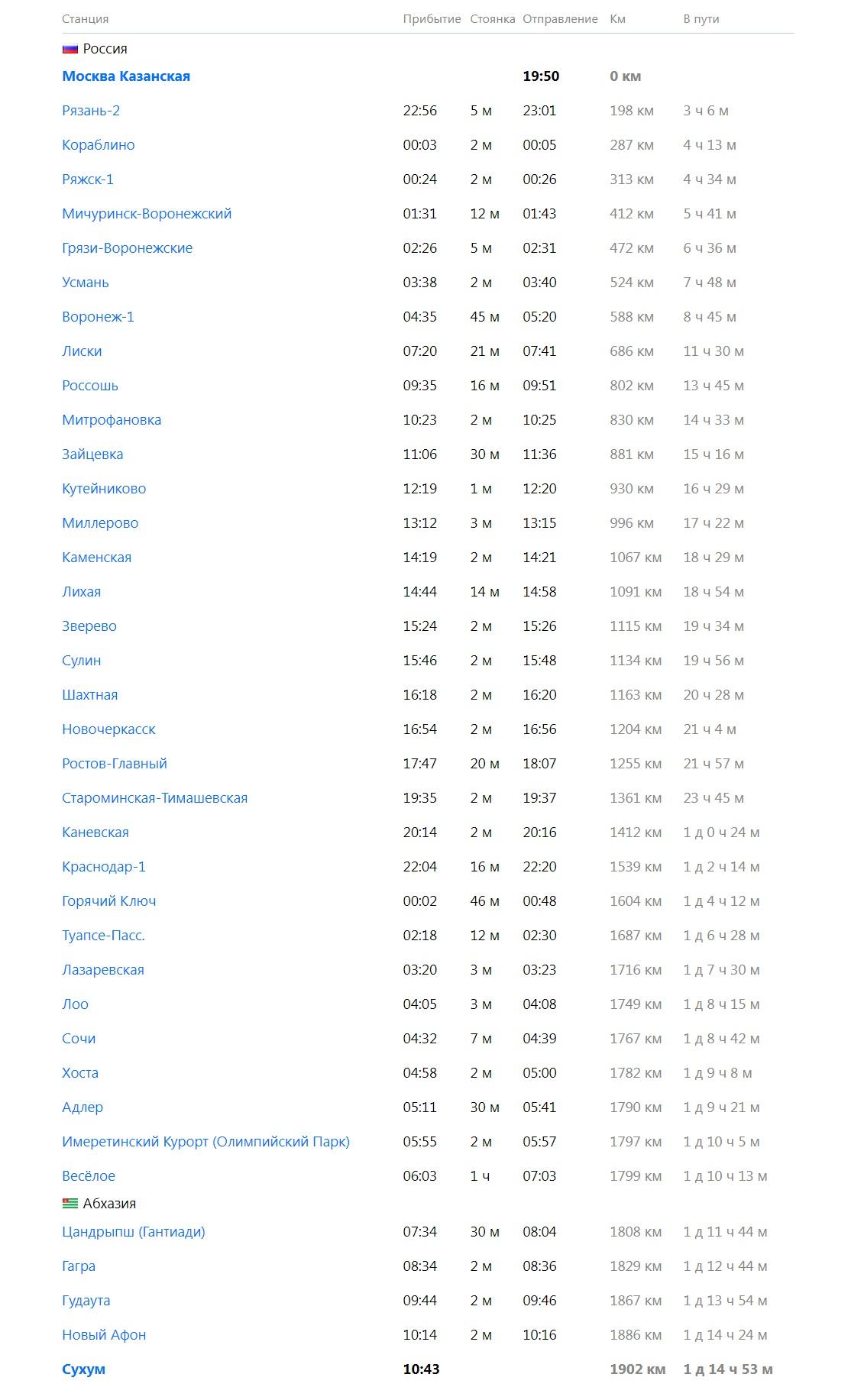 Москва Сухум ЖД