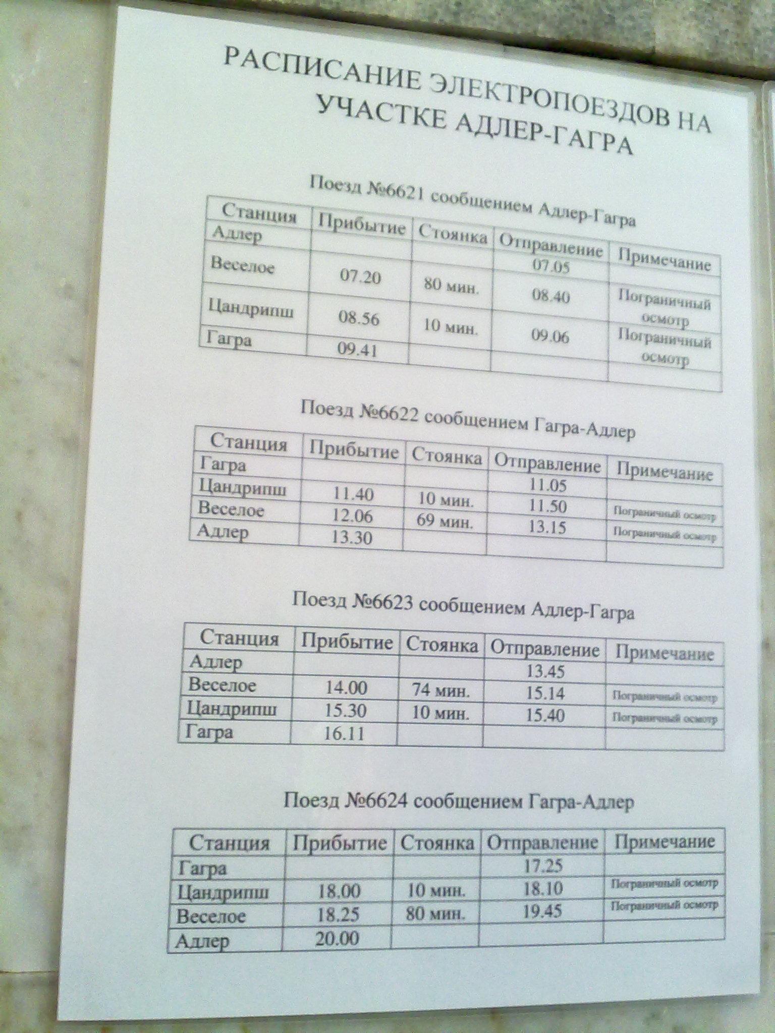Электричка Адлер Гагра