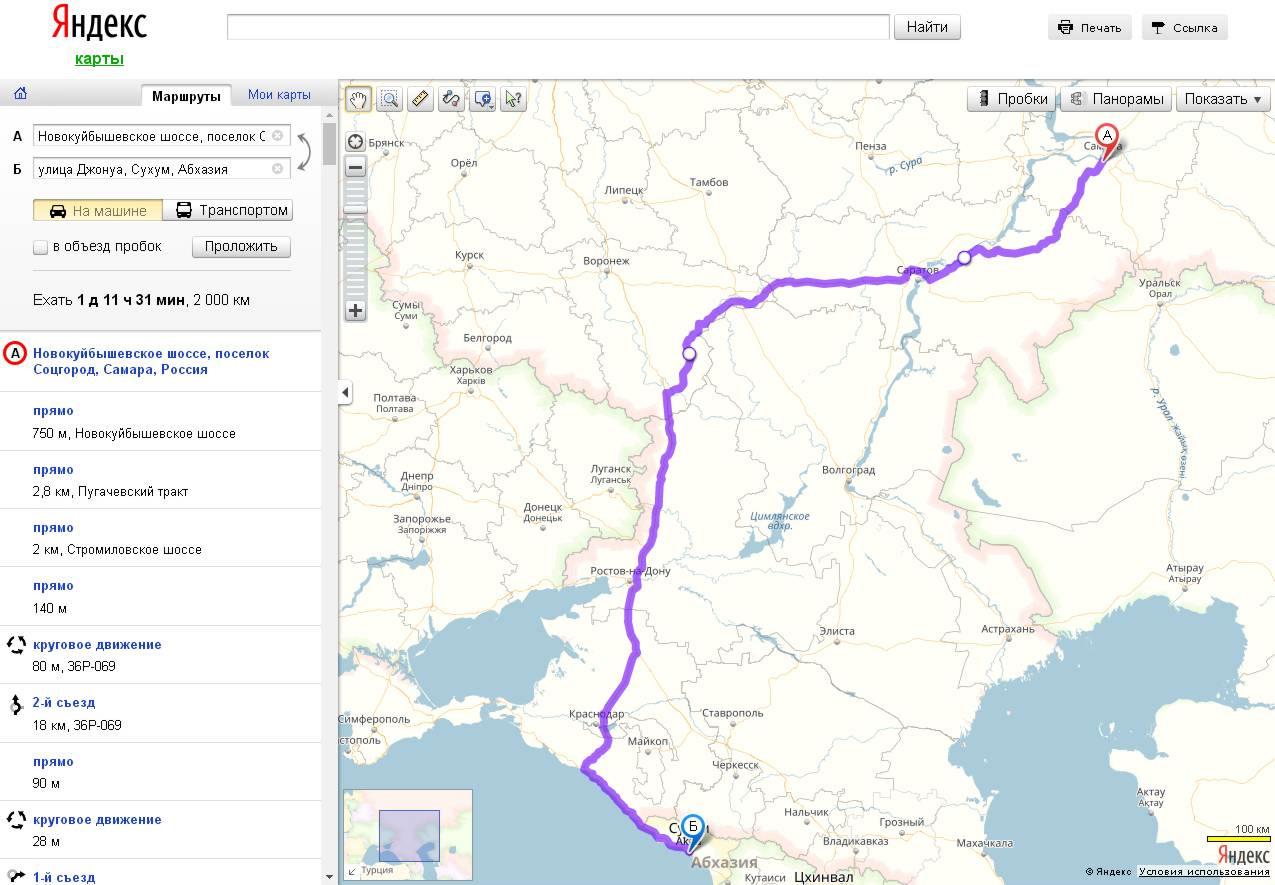 Карта маршрут Москва Сухум