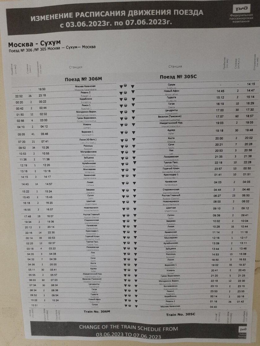 Поезд 306 Москва Сухум