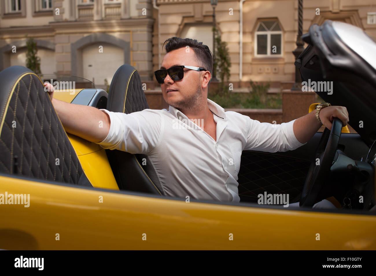 Мужчина в дорогой машине