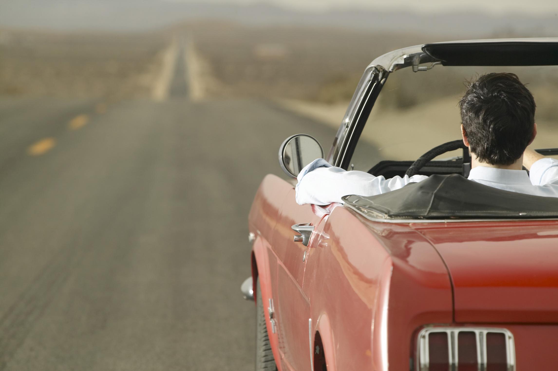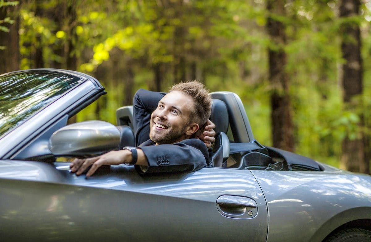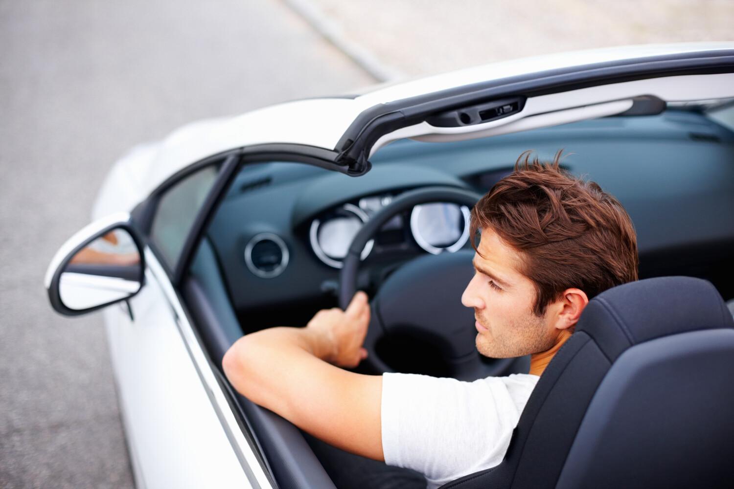 Мужчина за рулем кабриолета
