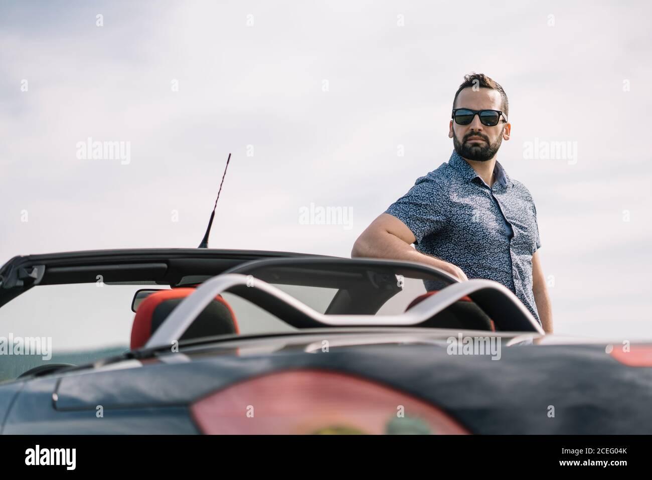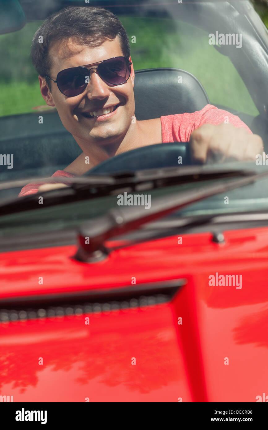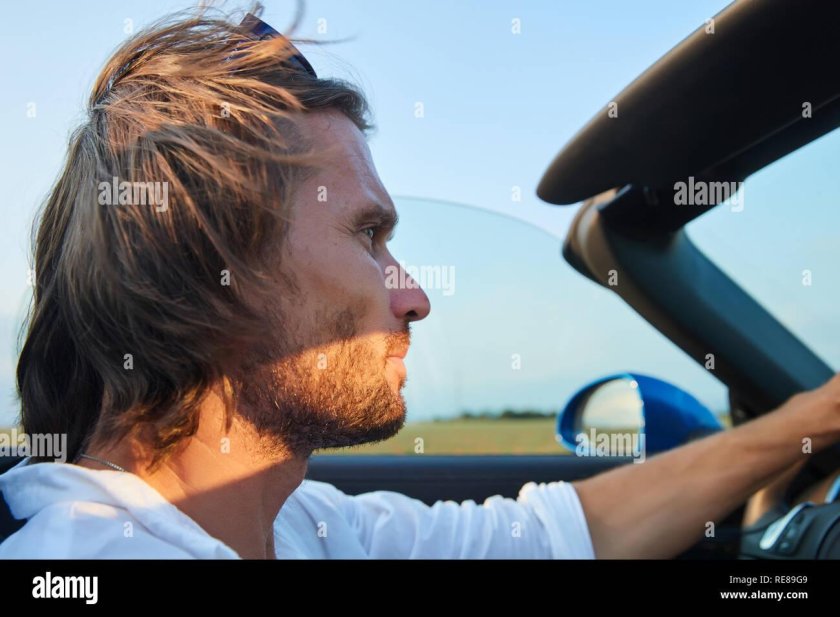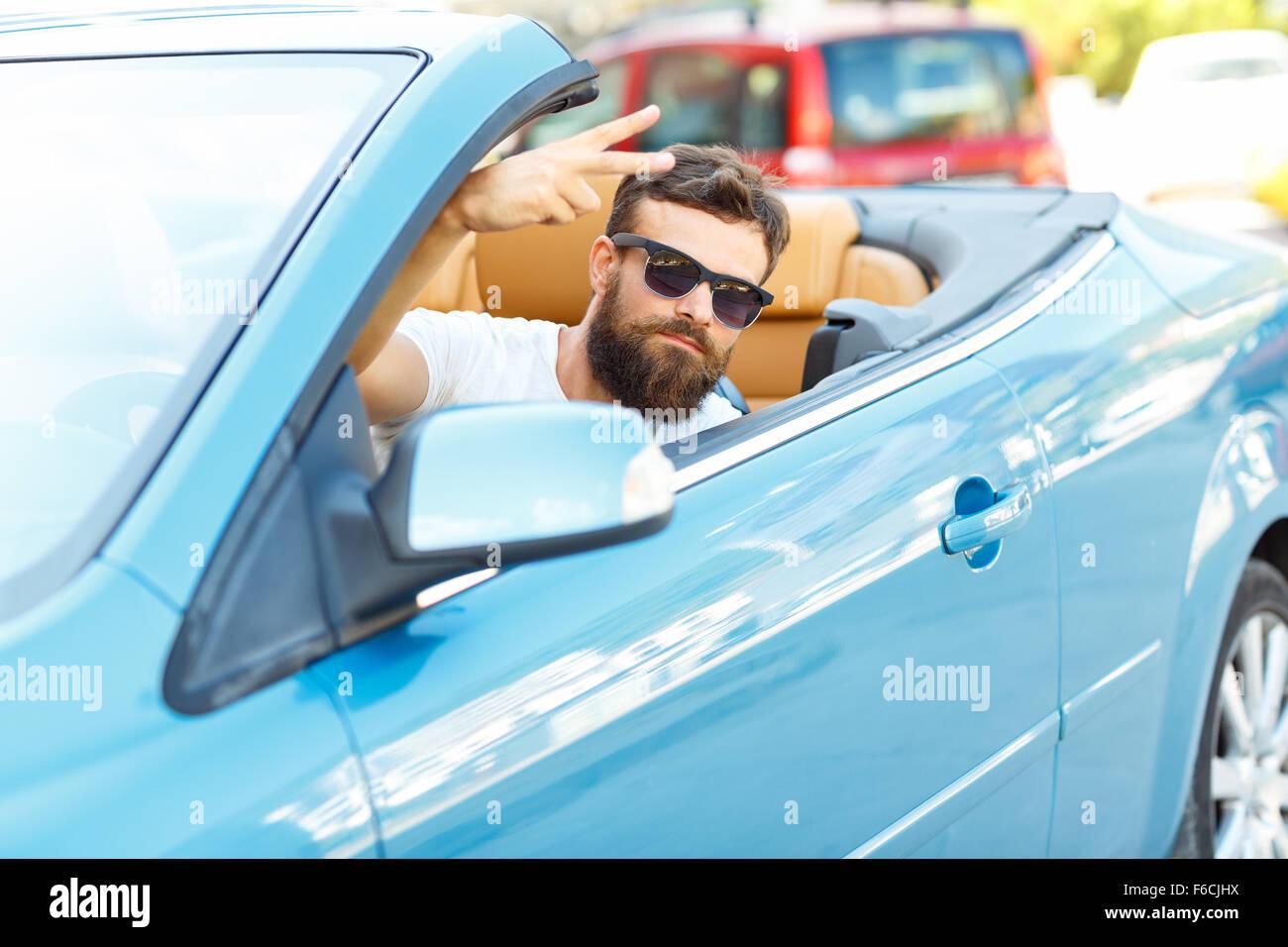 Мужчина за рулем кабриолета